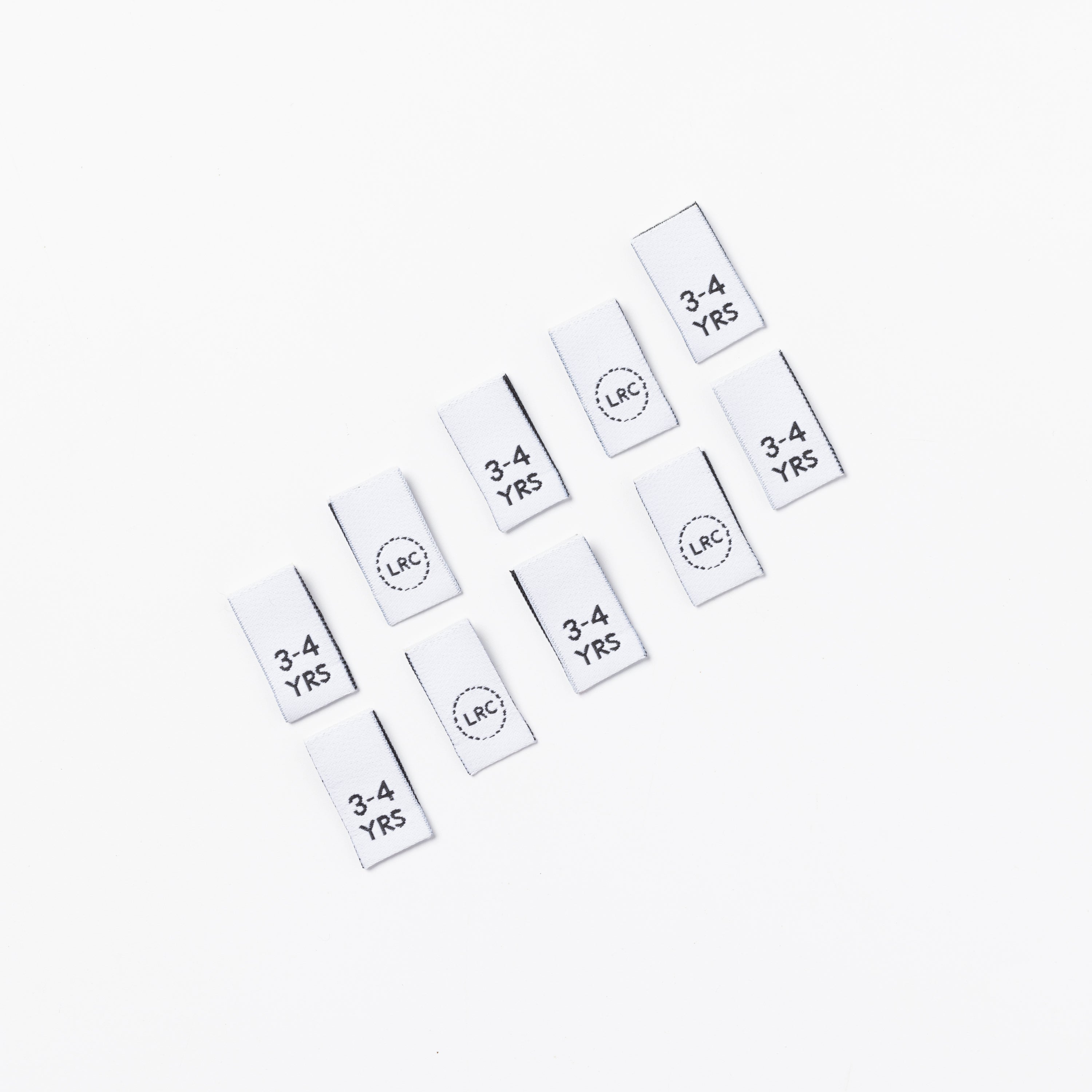 Elevate your children's wardrobes with our cute woven sewing labels featuring age ranges from 3-4 to 13-14. The perfect finishing touch for your lovingly made garments, adding a professional and personalised finish.