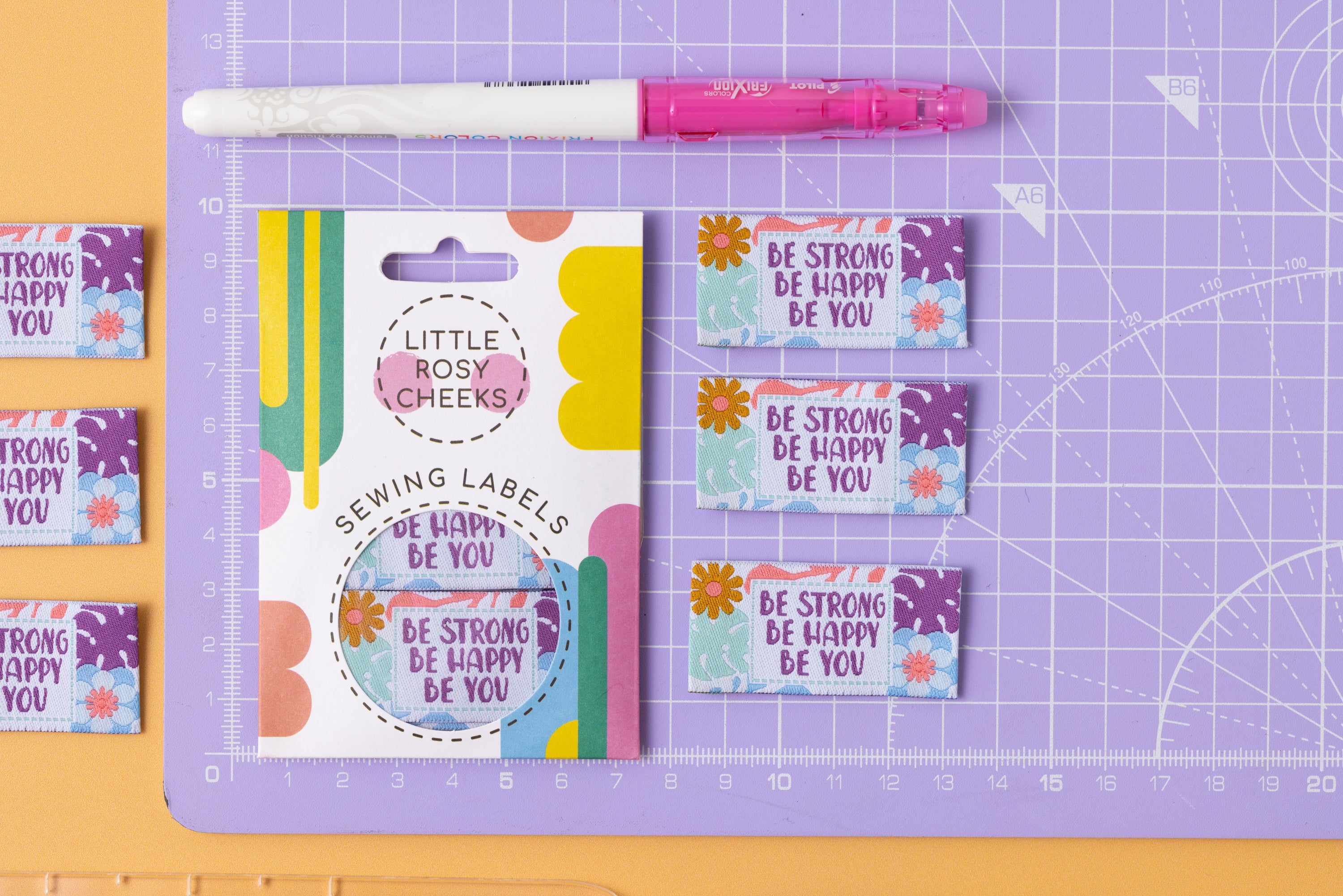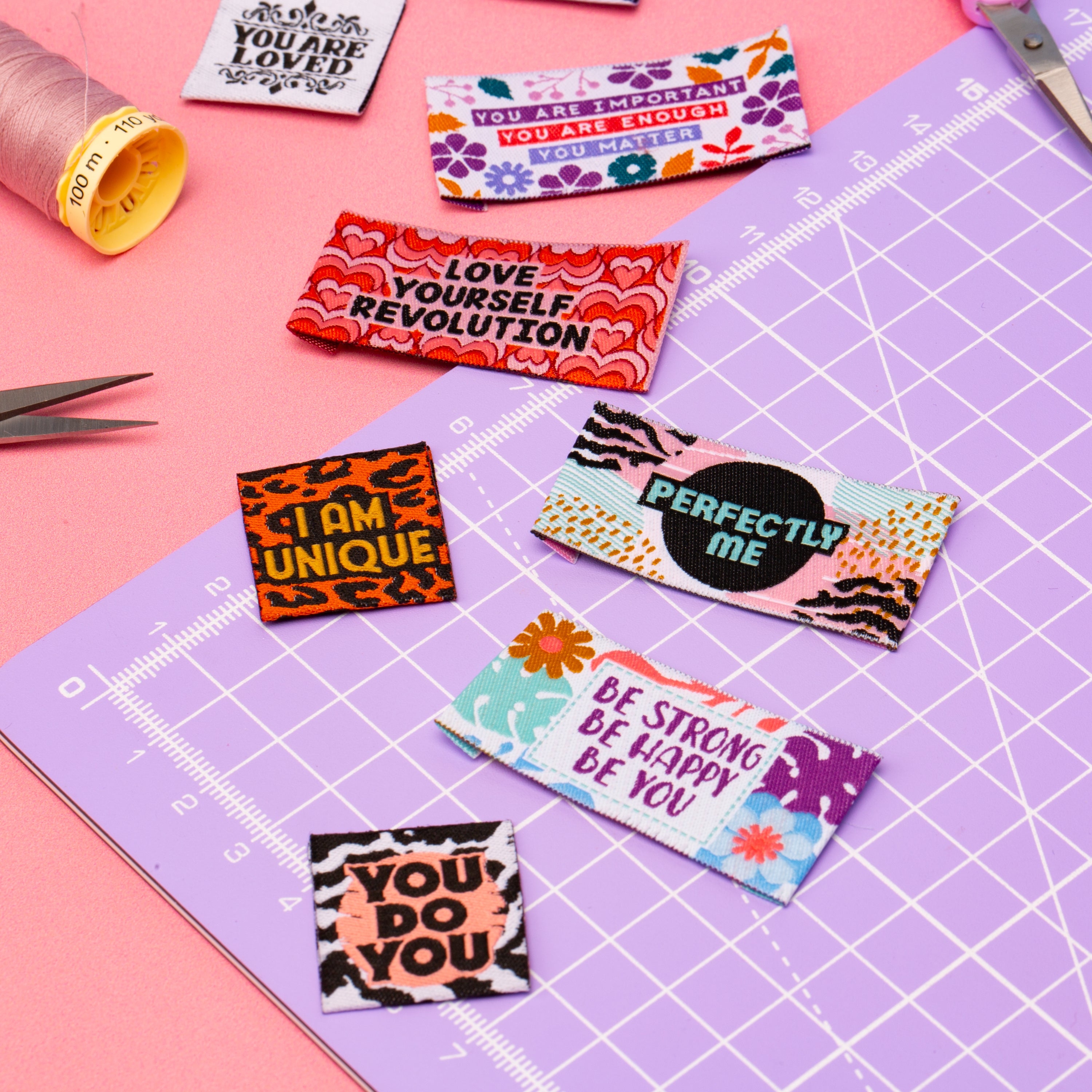 This label is flat with two edge folds on either side. The can be sewn flat to the inside of the garment or can be sewn on the outside too. This label is too good to be hidden away!