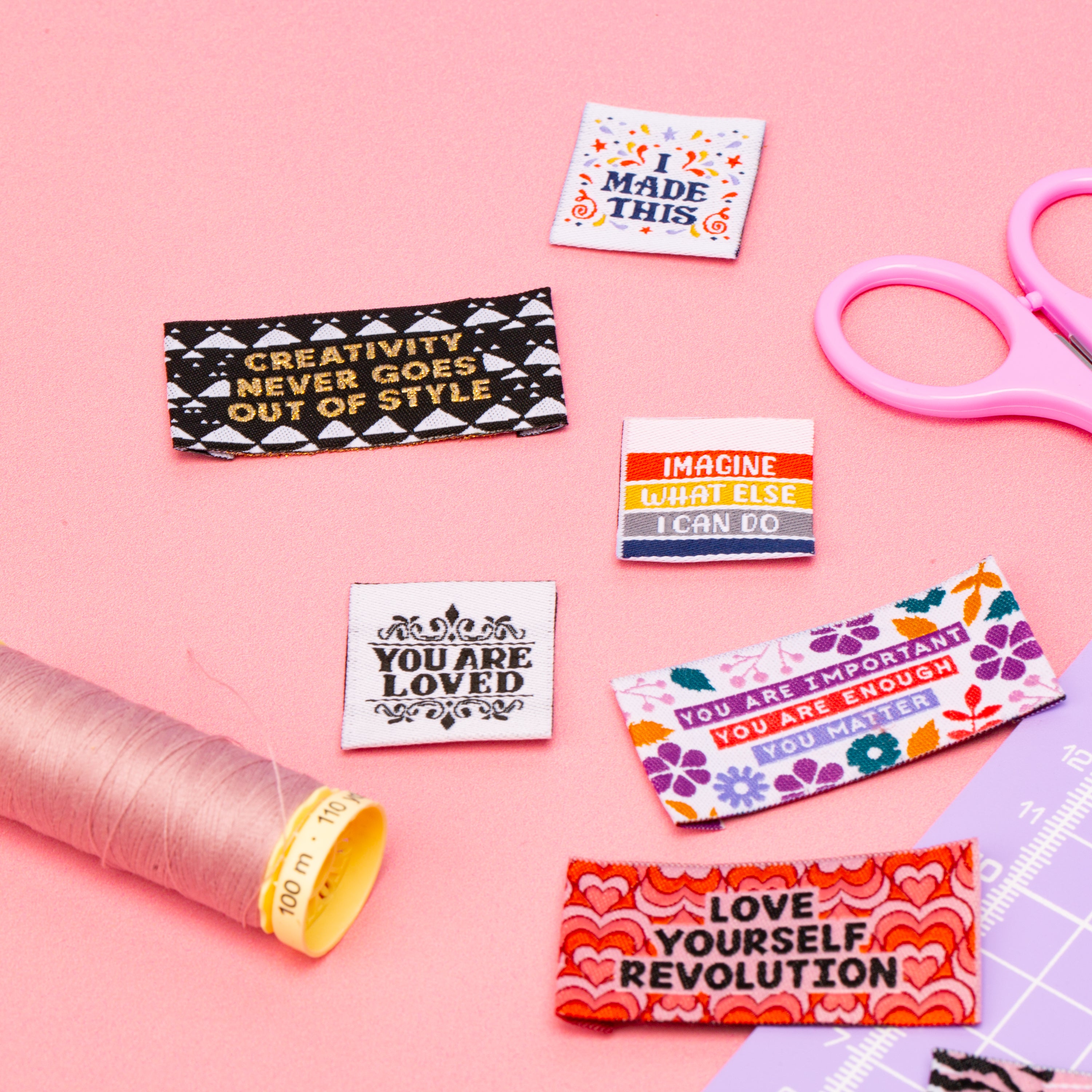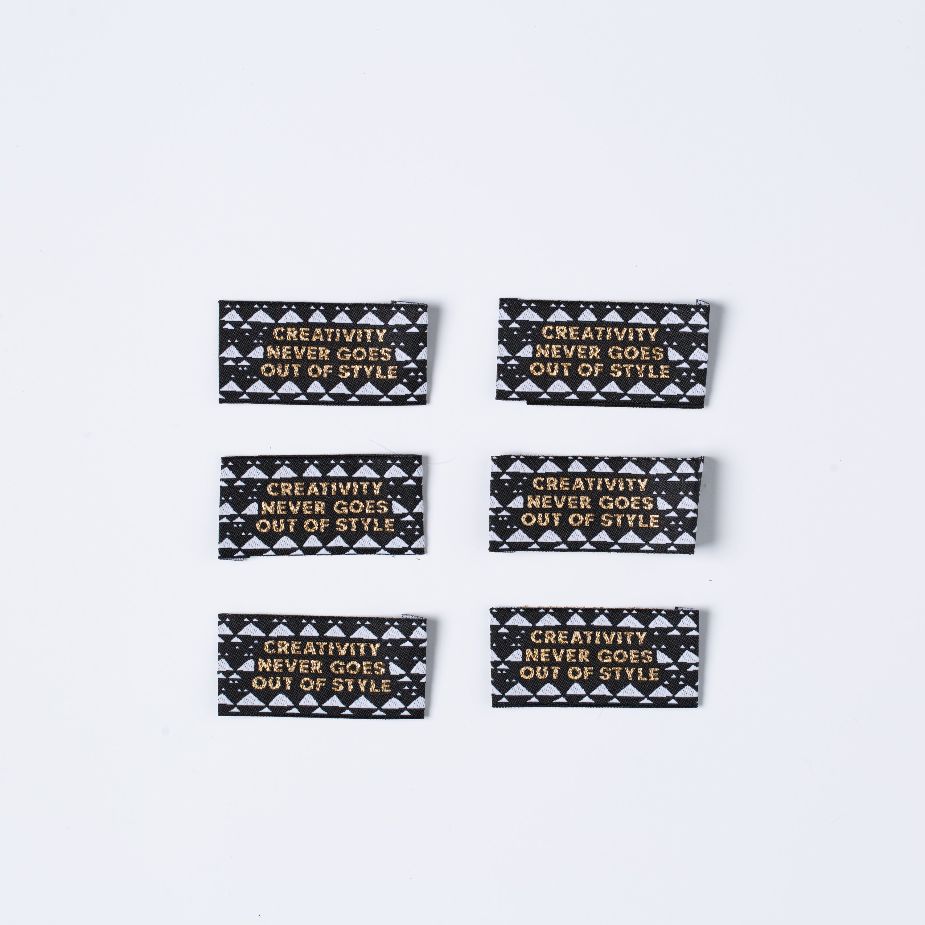 'CREATIVITY NEVER GOES OUT OF STYLE' is our first label using gold lurex thread. The thread is woven on to a graphic black and white background, as we all know monochrome never goes out of style! As home sewers we make garments that are worn again and again over the years, standing the test of time.