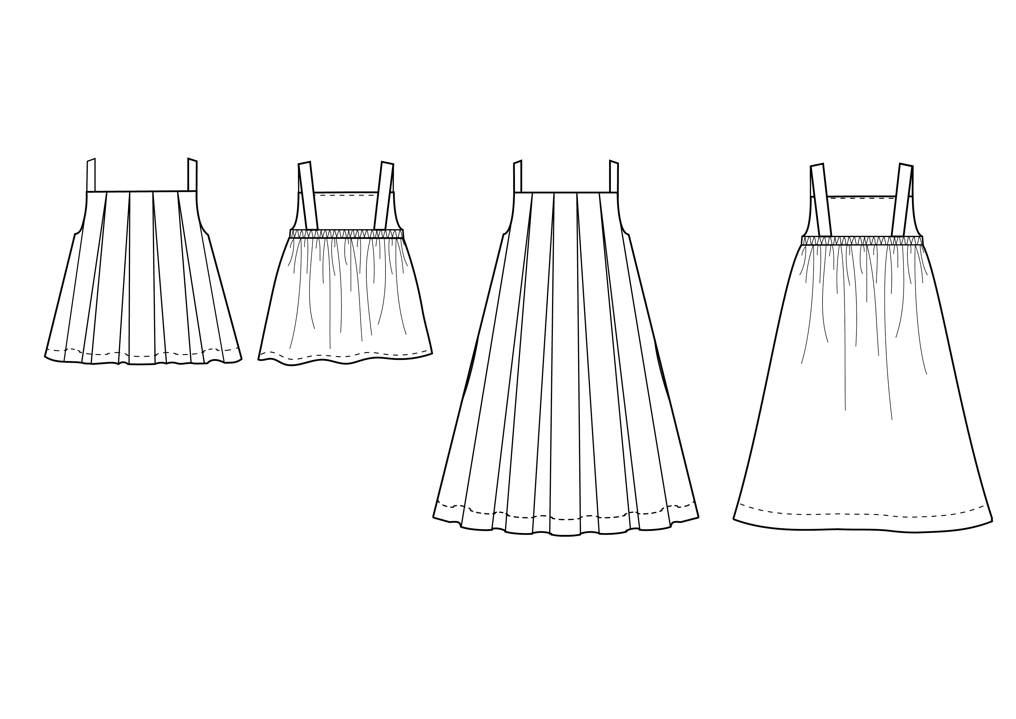 ETTLE is a fun and comfortable trapeze style summer dress and top. The pleated front and elasticated back add extra flair. The adjustable straps, deep hem and side seam pockets are all practical features which allow the dress to grow with your child. View A is a dress and view B top.