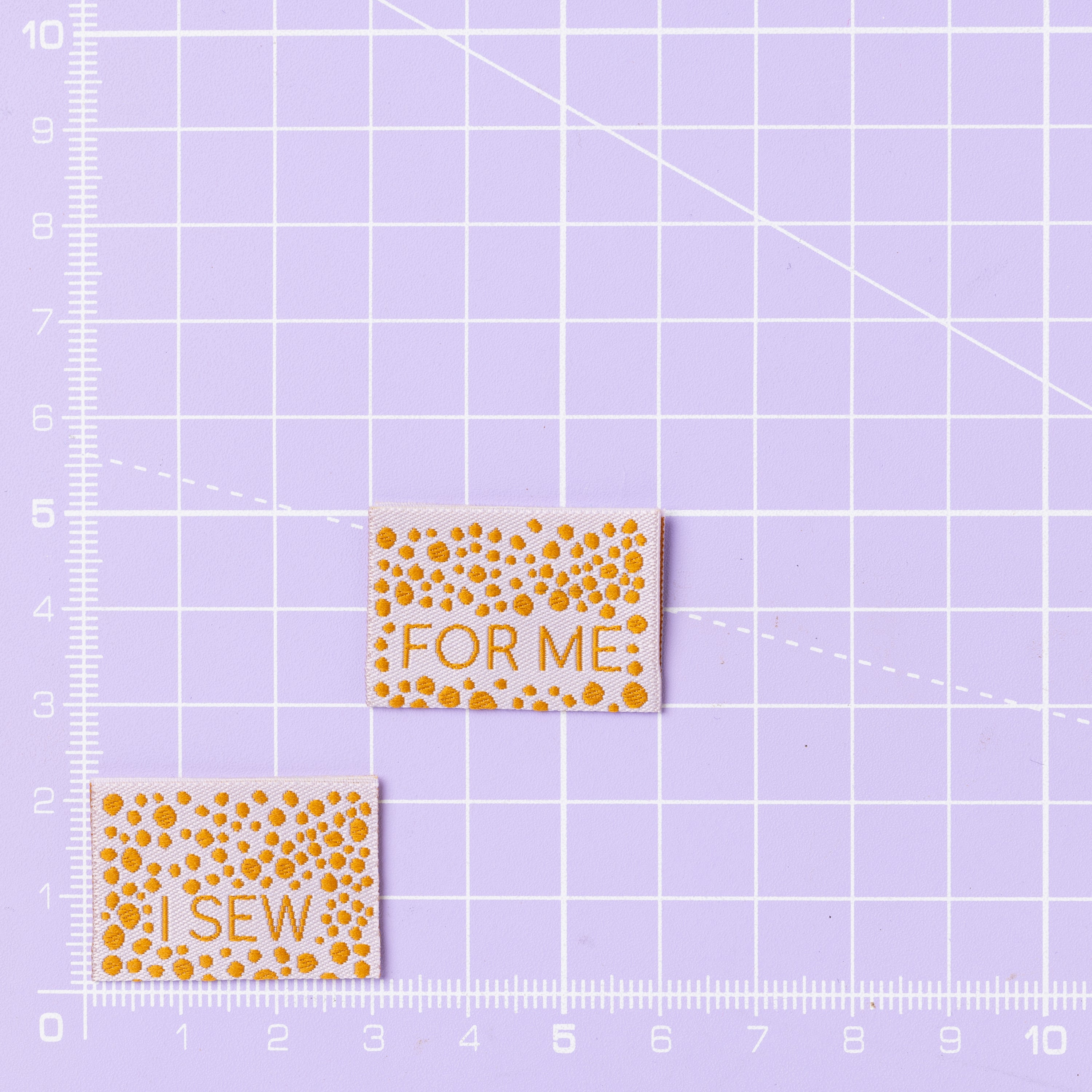 I SEW / FOR ME - with light purple and tan brown polka dot design X 2