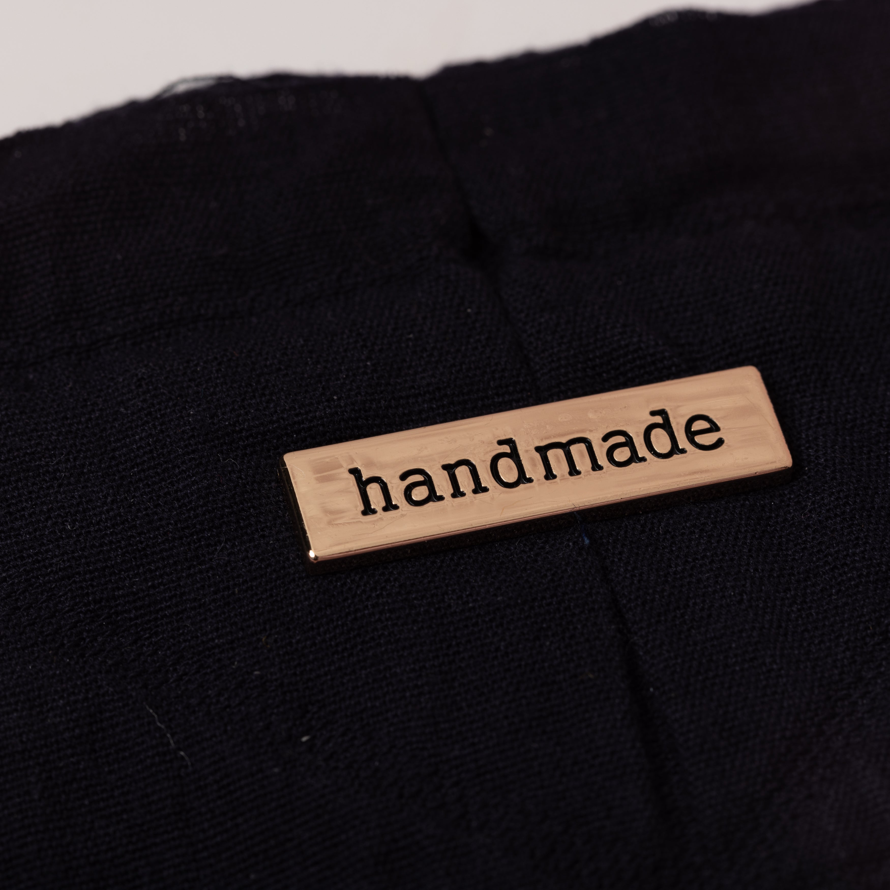 Elevate your homemade makes with a chic metal decorative label, the perfect finishing touch for any sewing project.