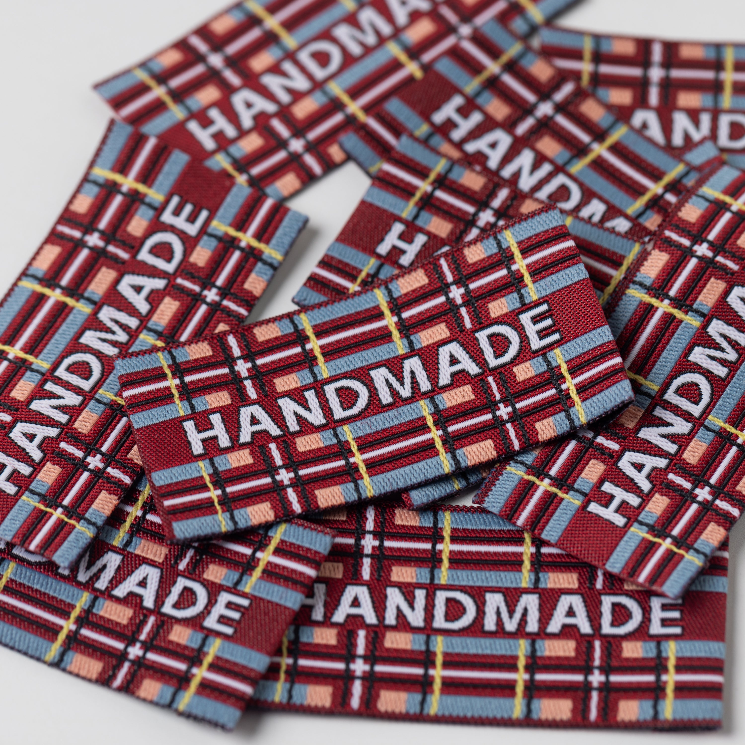 Add the perfect finishing touch to your autumn-winter creations with our Highland Handmade woven labels. Featuring 'Handmade' in snowy white on a rich, autumnal tartan, this label is both stylish and seasonal. Tartan is a quintessential autumnal pattern that returns year on year. This label is ideal for adding a timeless, cosy charm to your handmade garments, quilts and accessories.