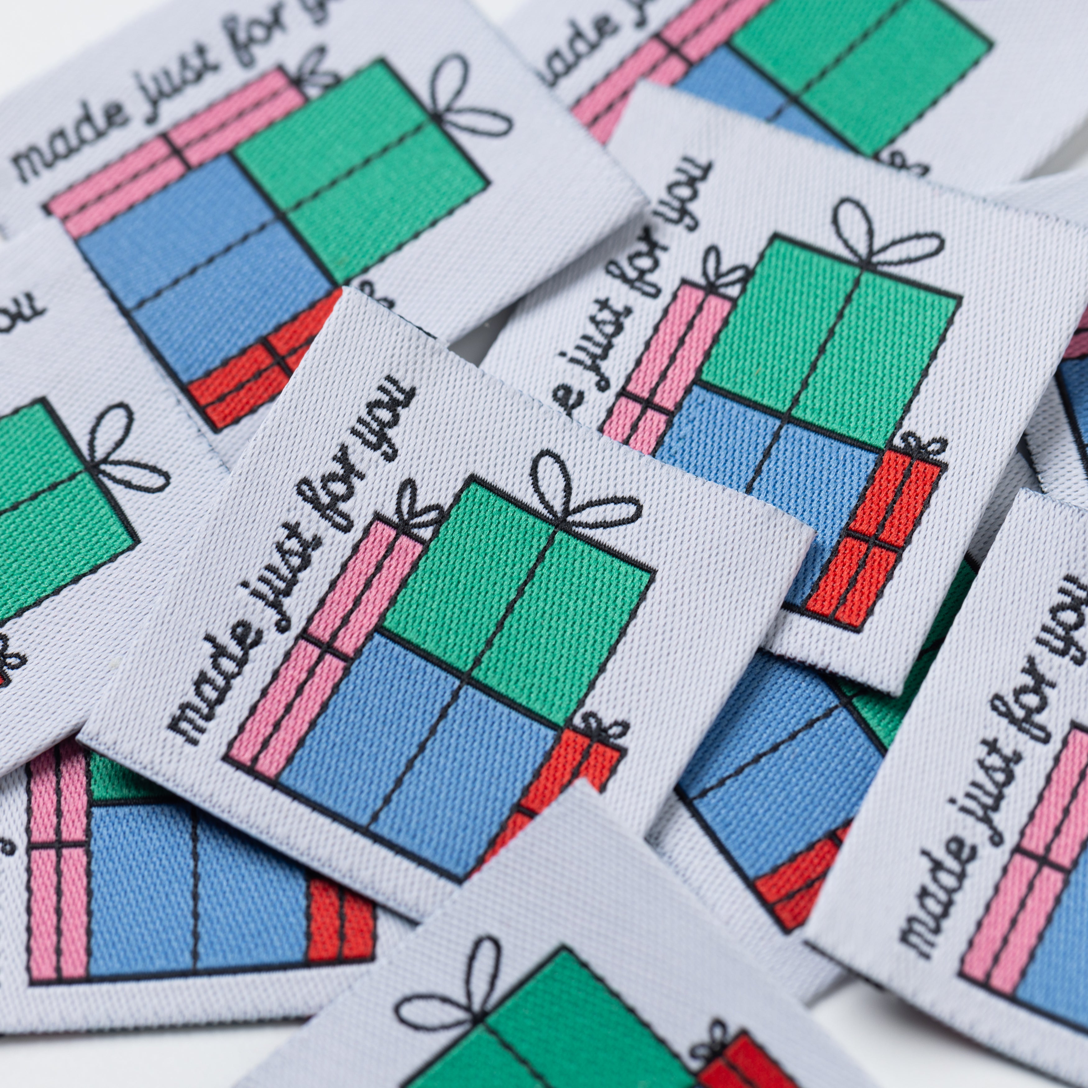 'MADE JUST FOR YOU' is larger label perfect for gifting! With pink, red, blue and green presents on a white background this label is ready to sew on to those fabulous handmade presents.