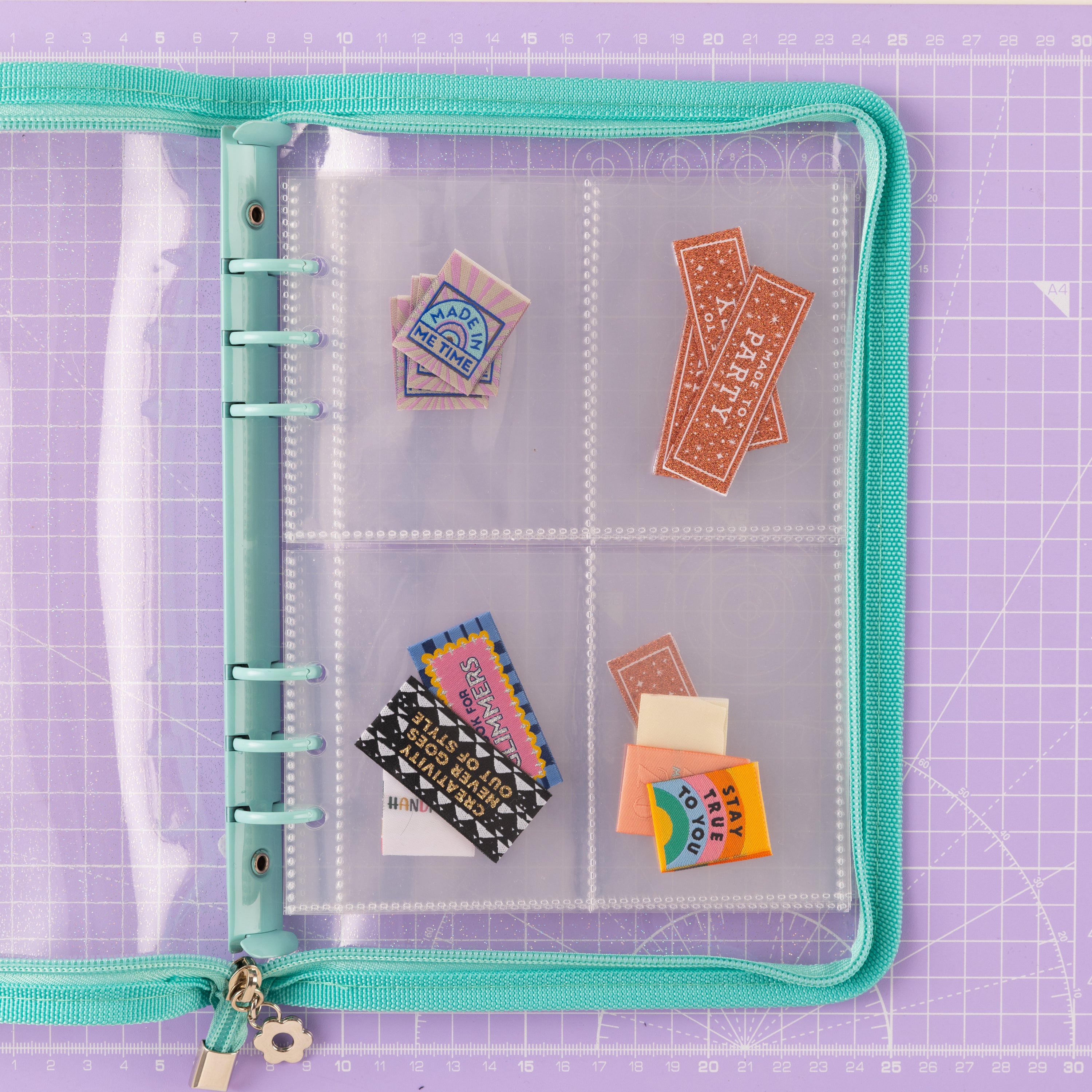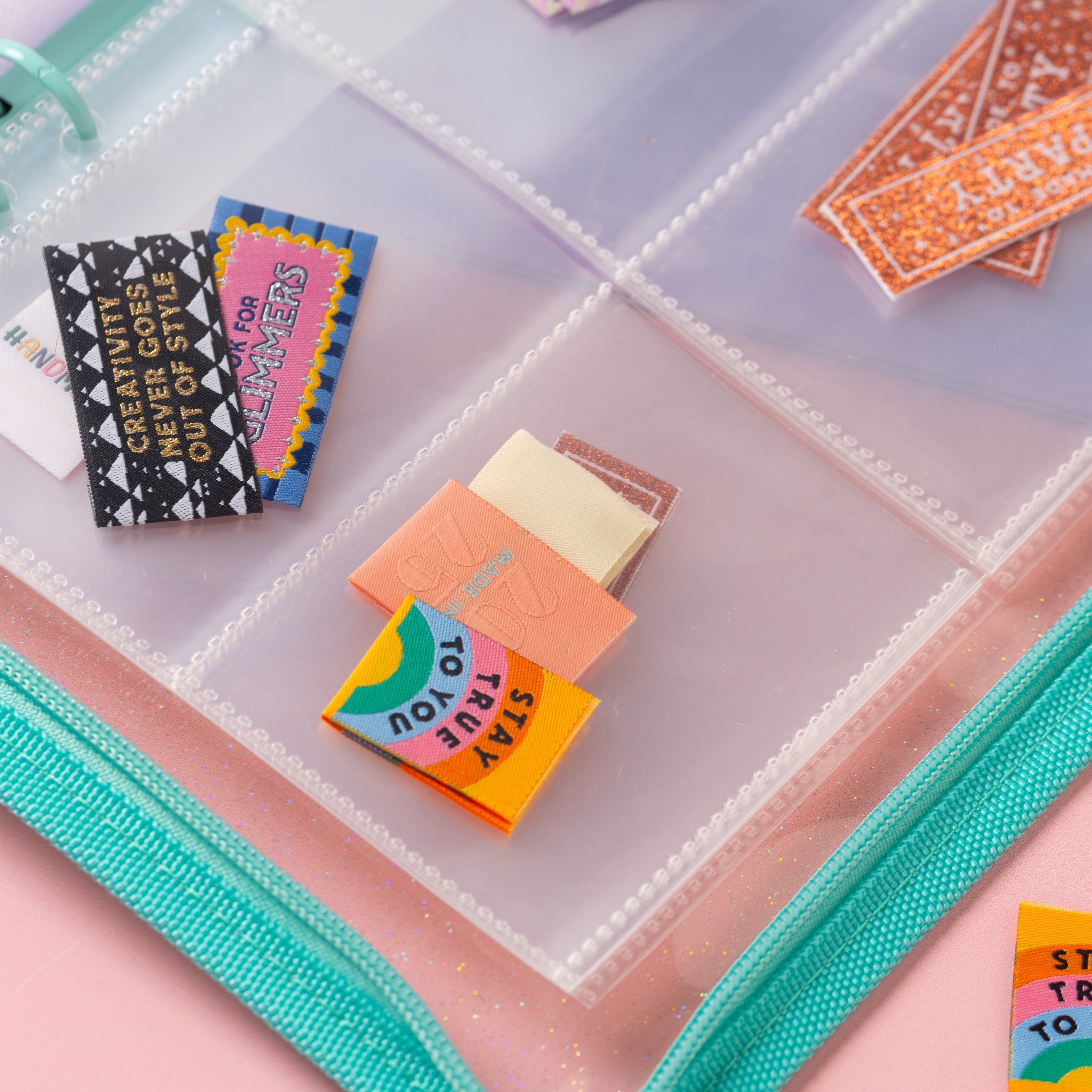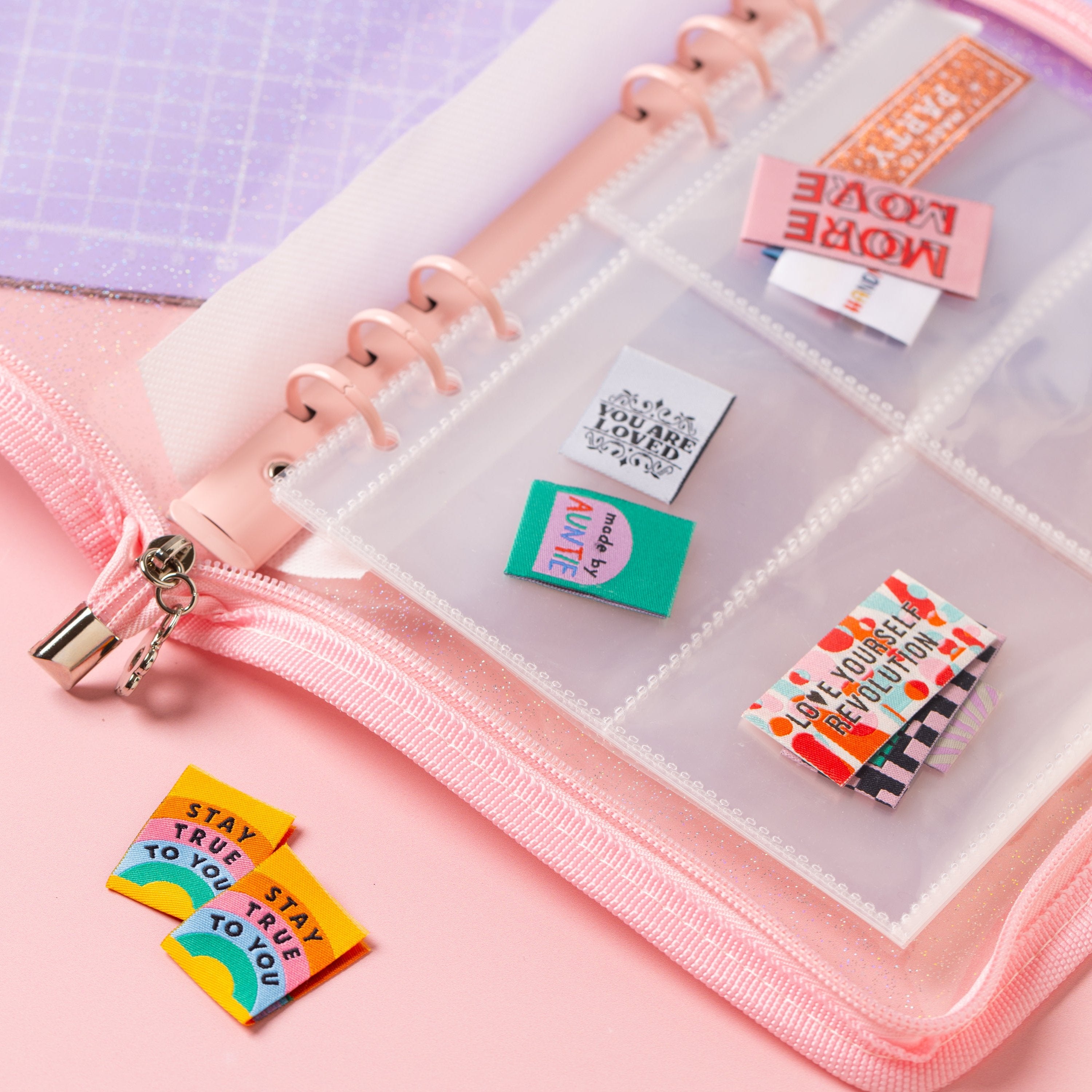 No more digging around in a box for the perfect label, organise your Little Rosy Cheeks labels with these Label Stash Folders. With this glittery transparent folder you can see all your gorgeous labels, clearly organised within pockets. The folder can be zipped shut so nothing can fall out.
