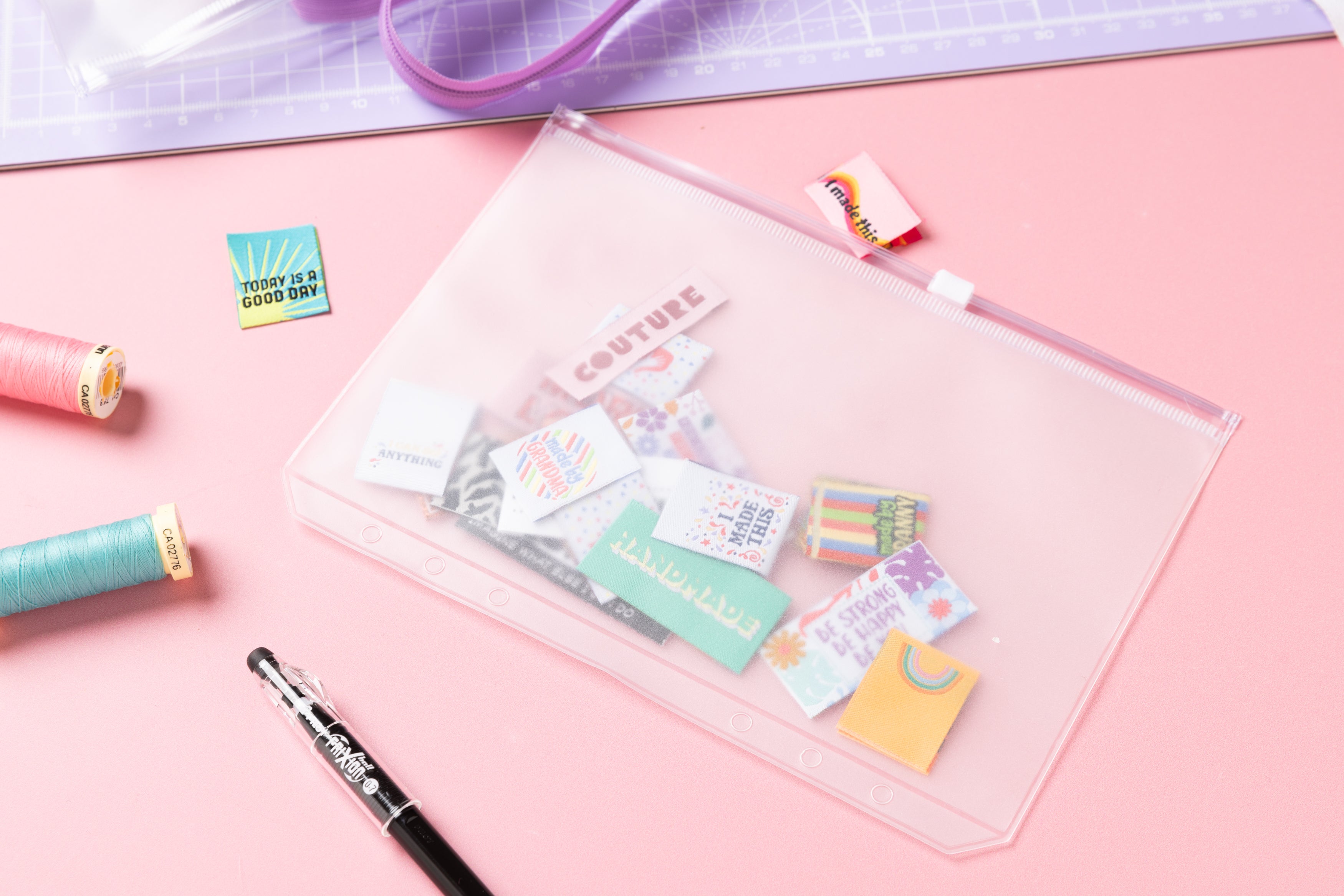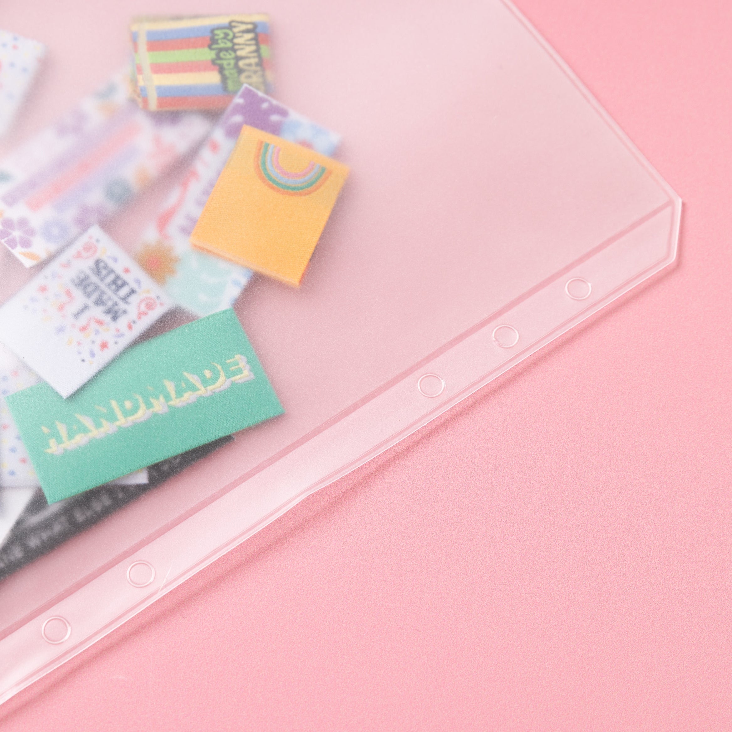 5 SLEEVES for the Little Rosy Cheeks Label Stash Folder - zip lock. Ideal for storing labels, buttons, zips and other haberdashery. Please note: These sheets are for the larger Stash Folders and do not fit the mini Label Stash Folders.