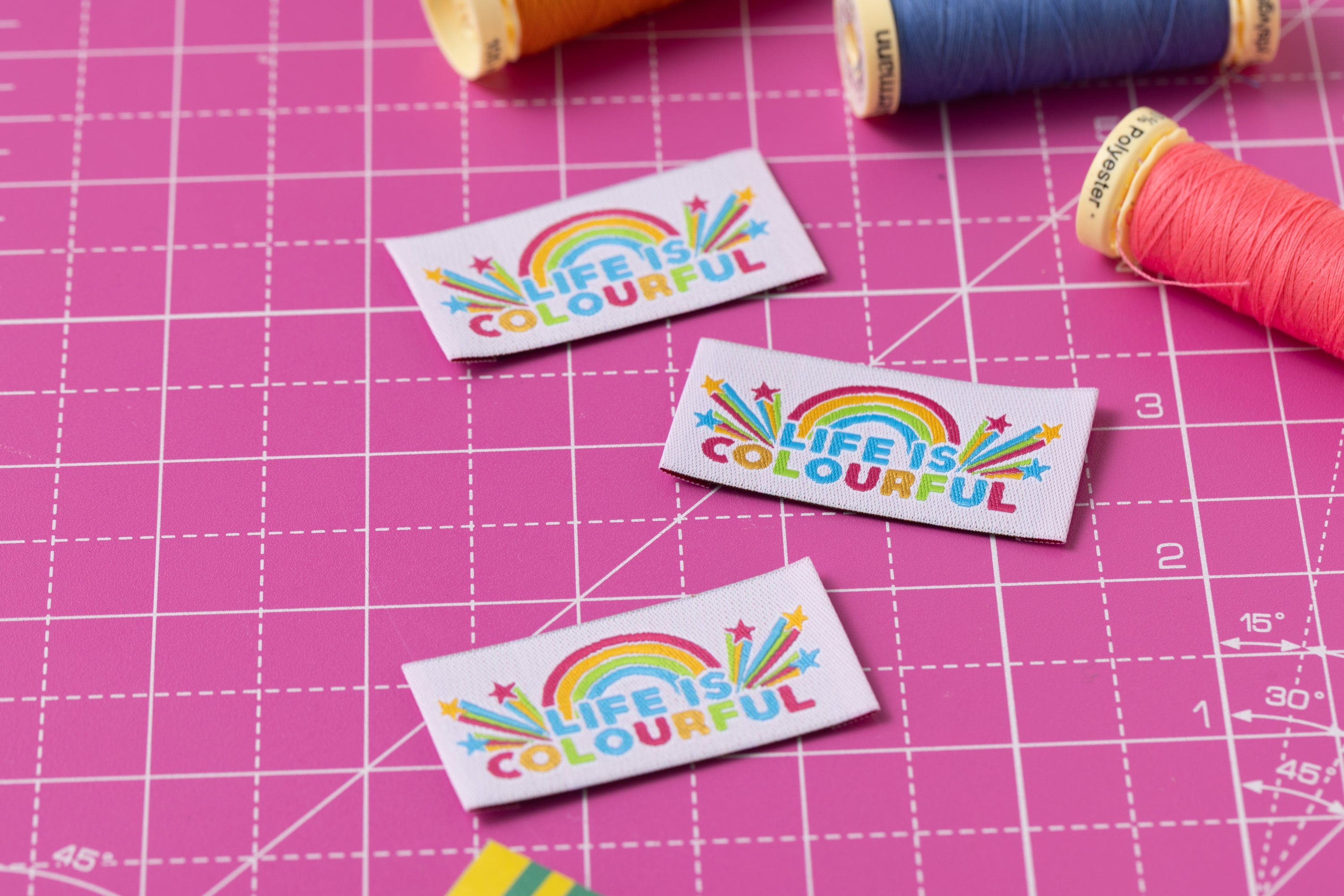 This label is flat with two edge folds on either side. The can be sewn flat to the inside of the garment or can be sewn on the outside too. This label is too good to be hidden away! I love this size of label on a quilt or bag too.