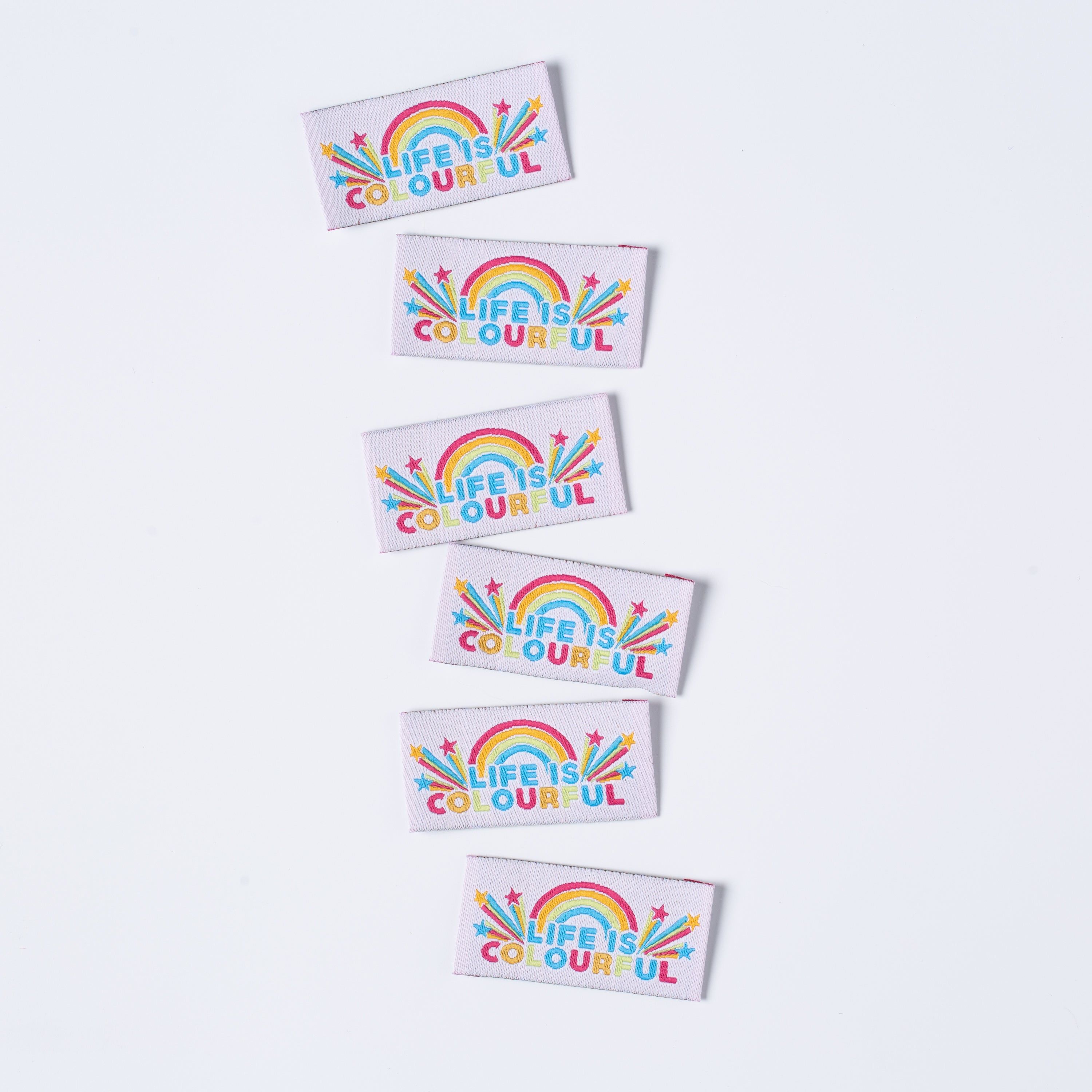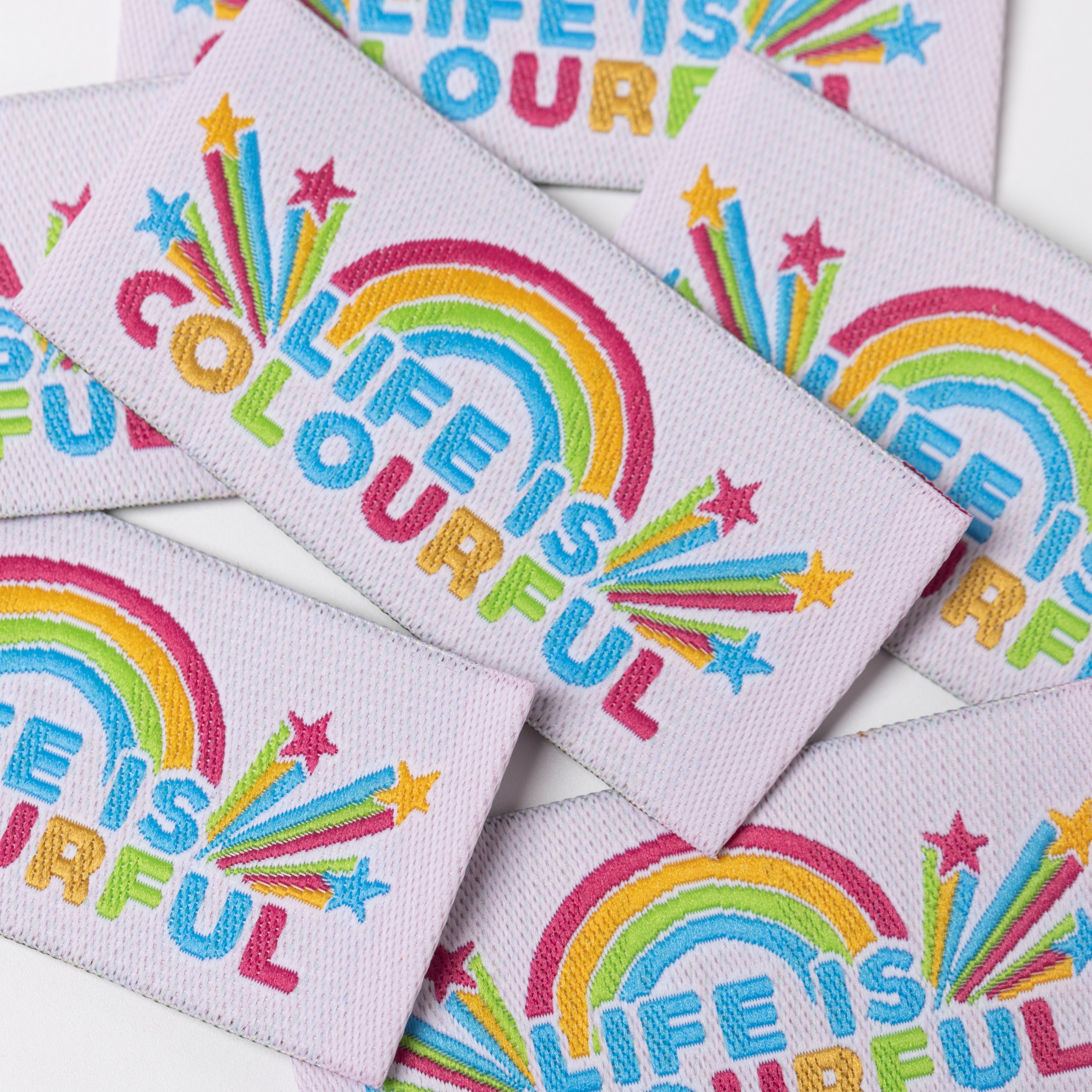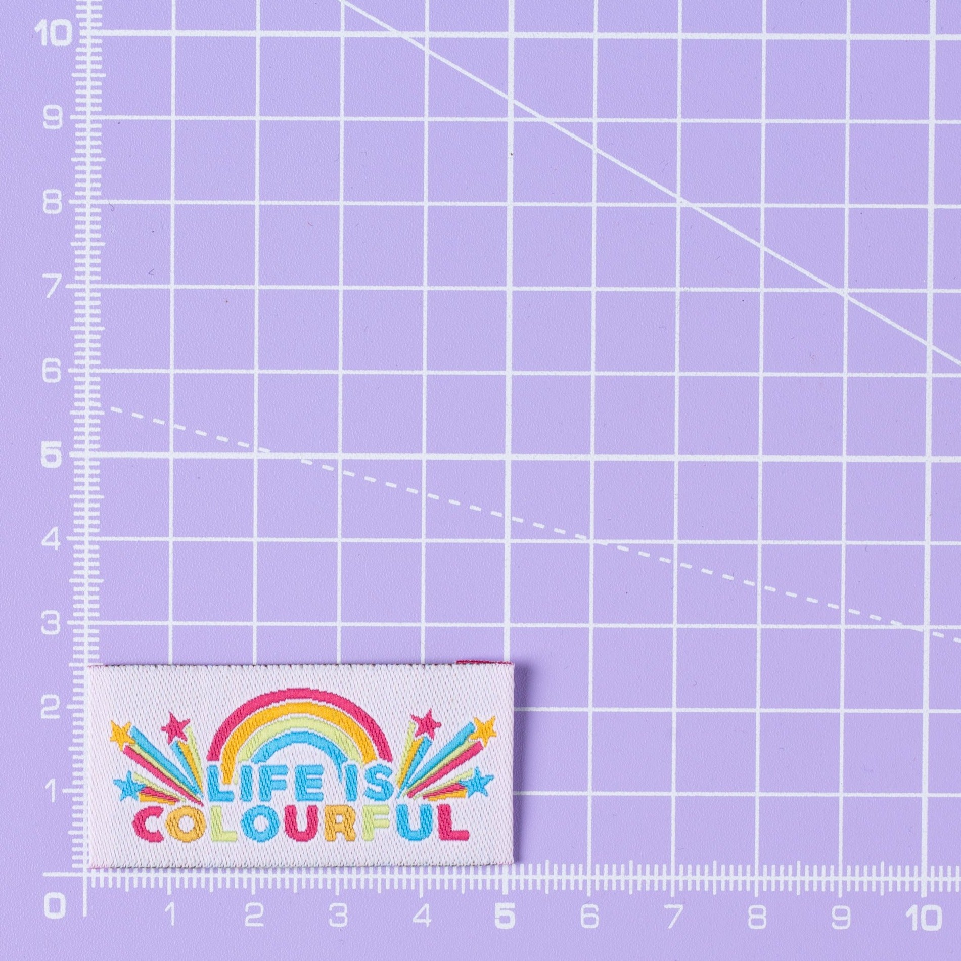 'Life is Colourful' features a colourful rainbow and shooting star design on a white background