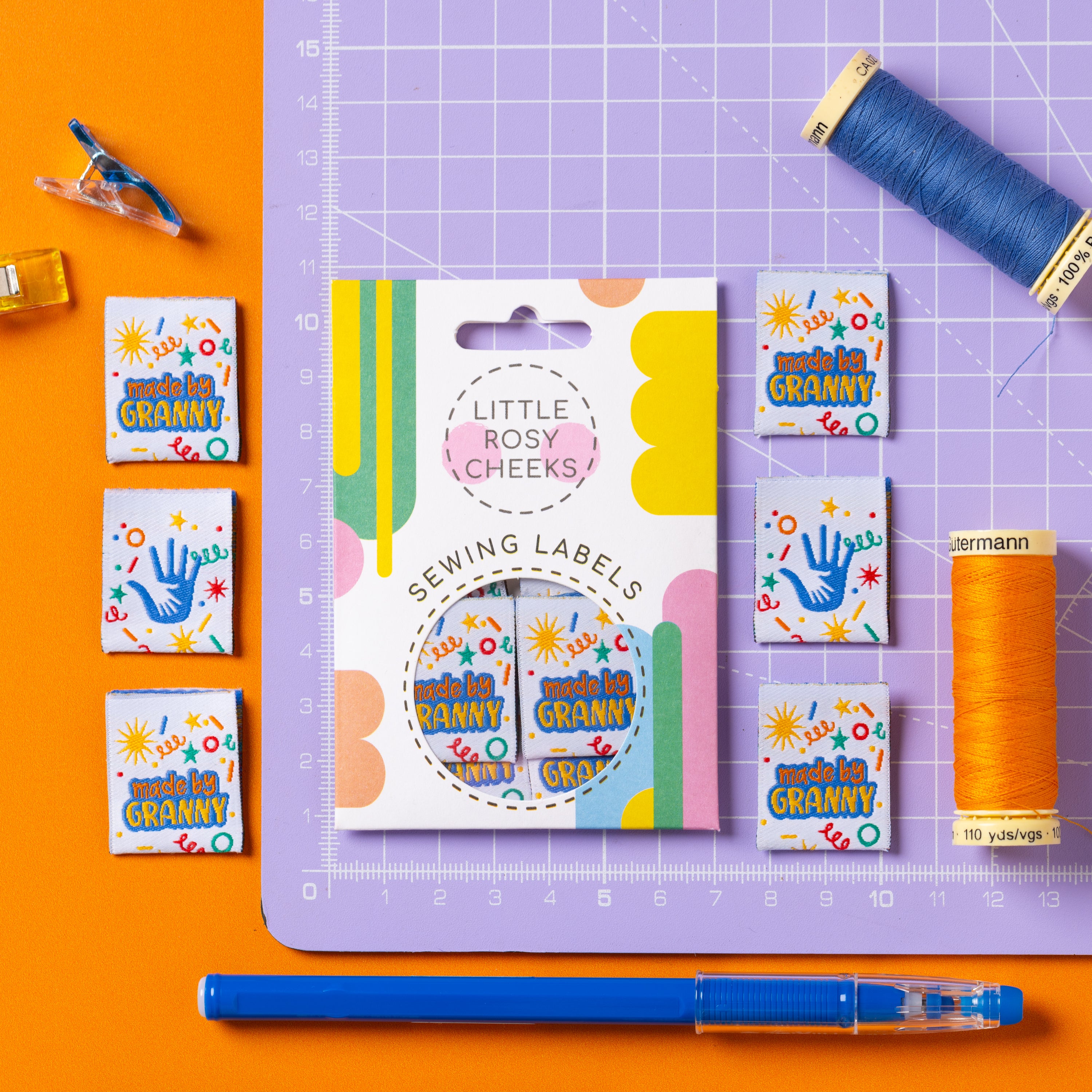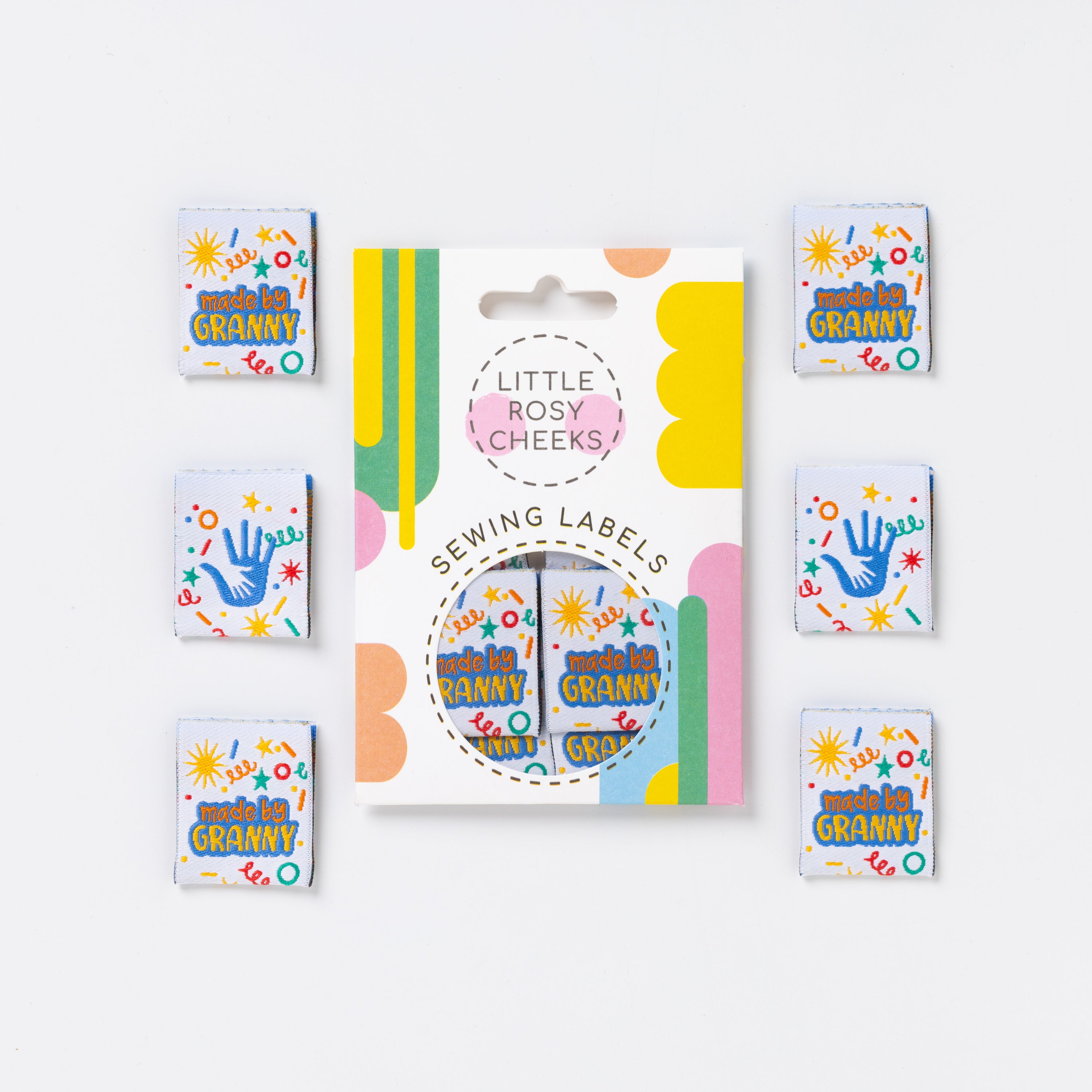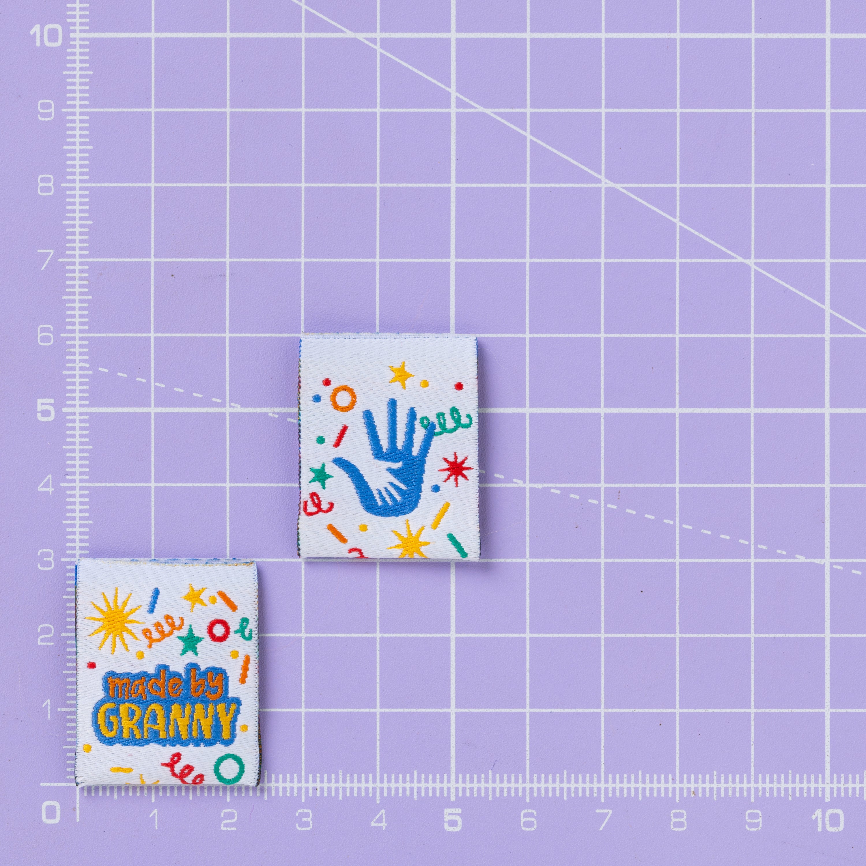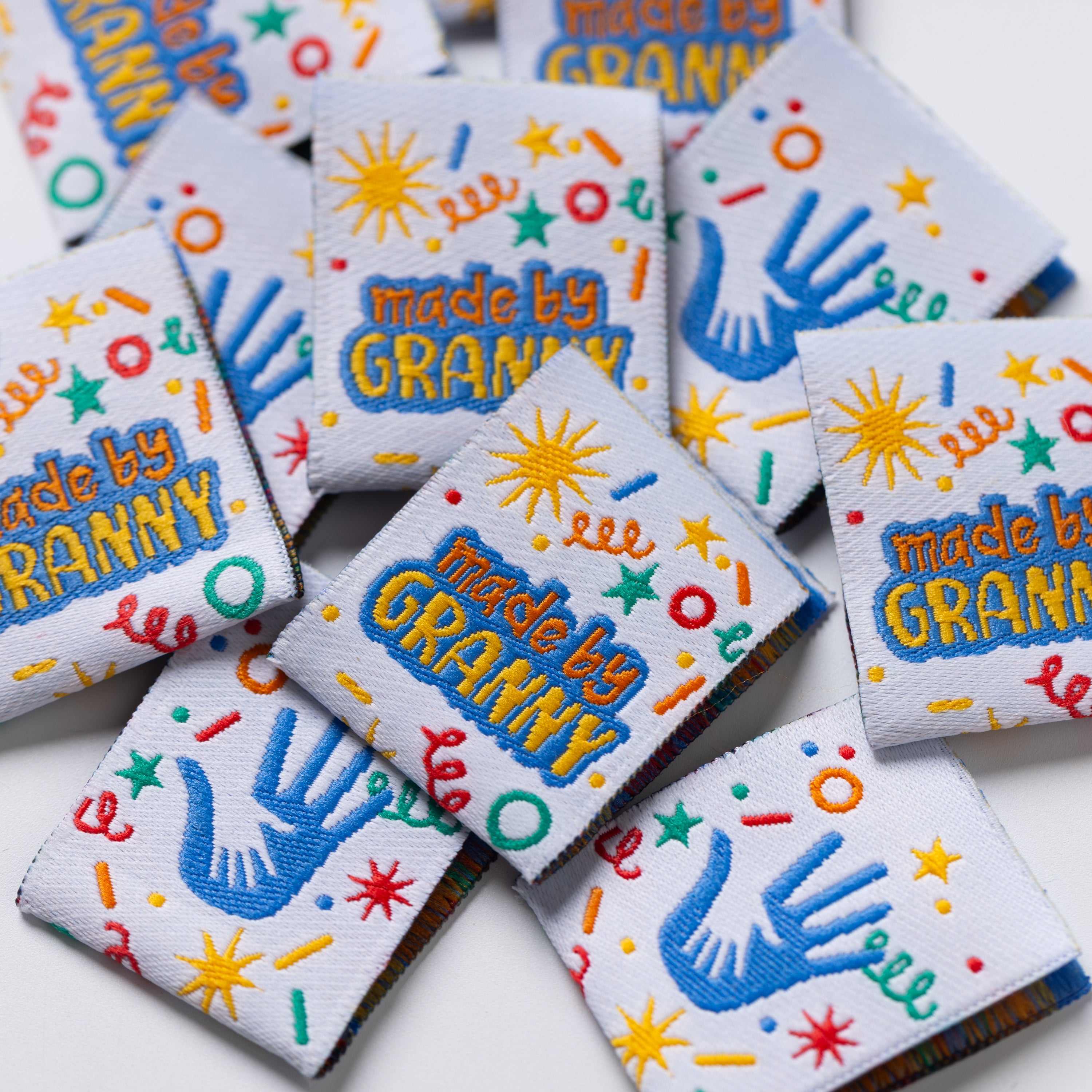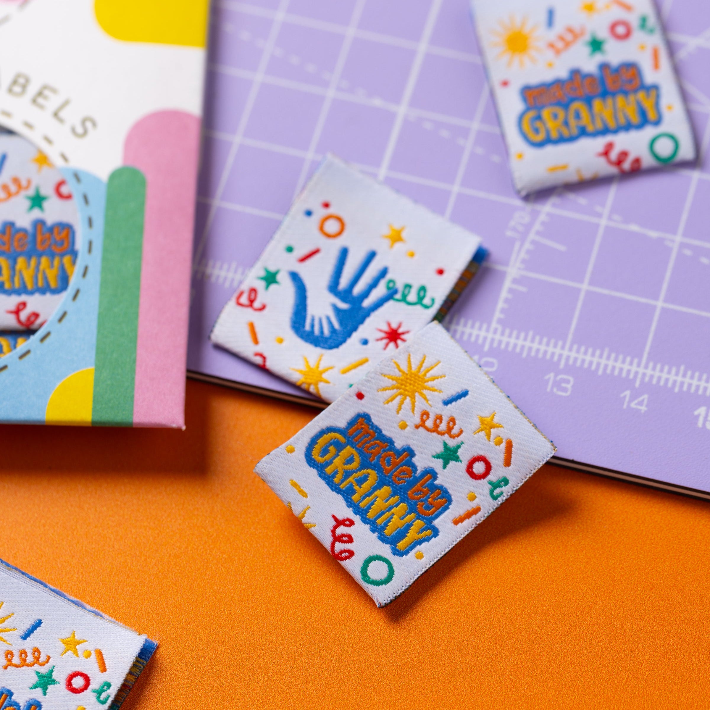 Wrap your creations in love with our newest Made by Granny woven labels, now featuring our iconic ‘Loving Hands’ graphic. These labels sparkle with playful swirls, stars, and simple shapes in bright, joyful colours. Perfect for garments, gifts, and keepsakes, each label is a tiny hug from Granny, stitched right in.