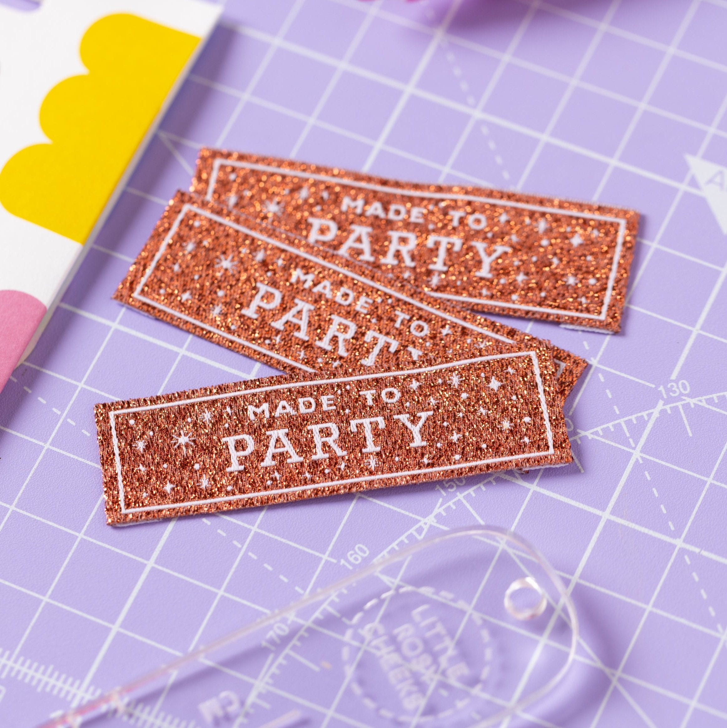 Introducing our "Made to Party" Sewing Label, crafted with luxurious rose gold threads and adorned with vibrant white lettering and stars. This super sparkly label adds the perfect finishing touch to your handmade party dresses, ensuring your creations stand out. Ideal for sewers who love a bit of glam, this label is a must-have for every celebration-ready outfit!