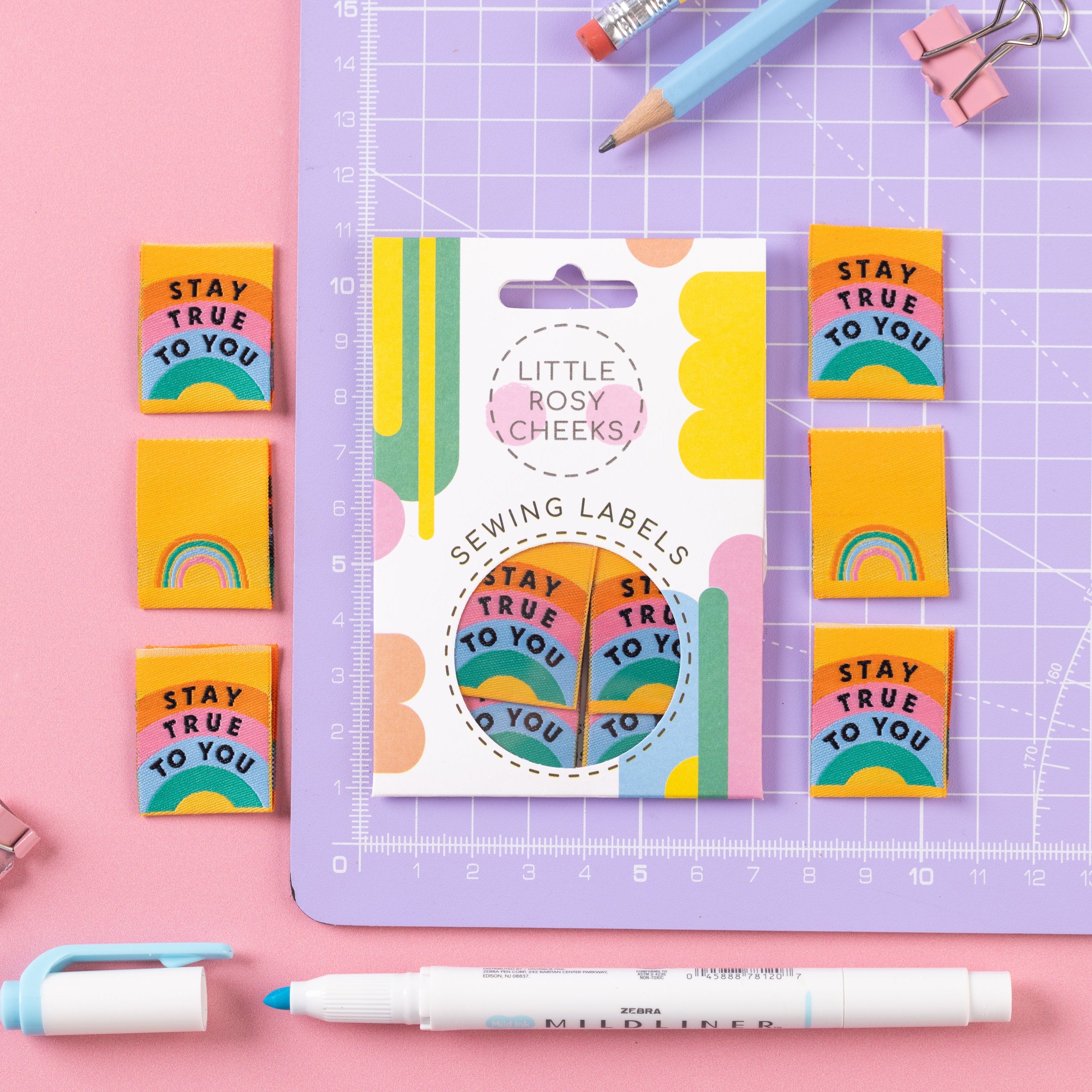 Elevate your handmade creations with our Stay True to You label. Featuring inspiring words woven across a vibrant rainbow, this label adds a meaningful touch to any project. Perfect for expressing individuality and positivity, it’s a colourful reminder to embrace your authentic self with every stitch.