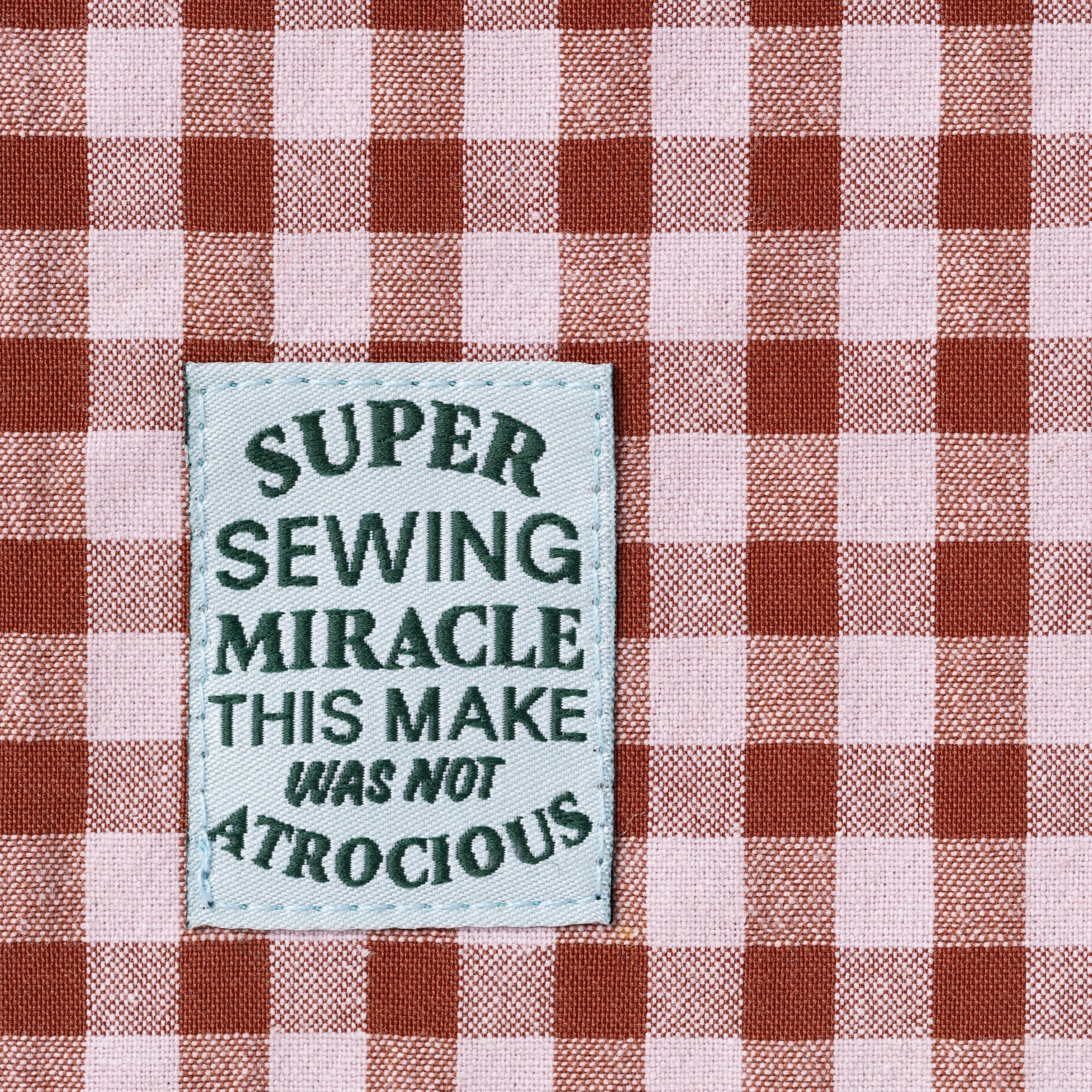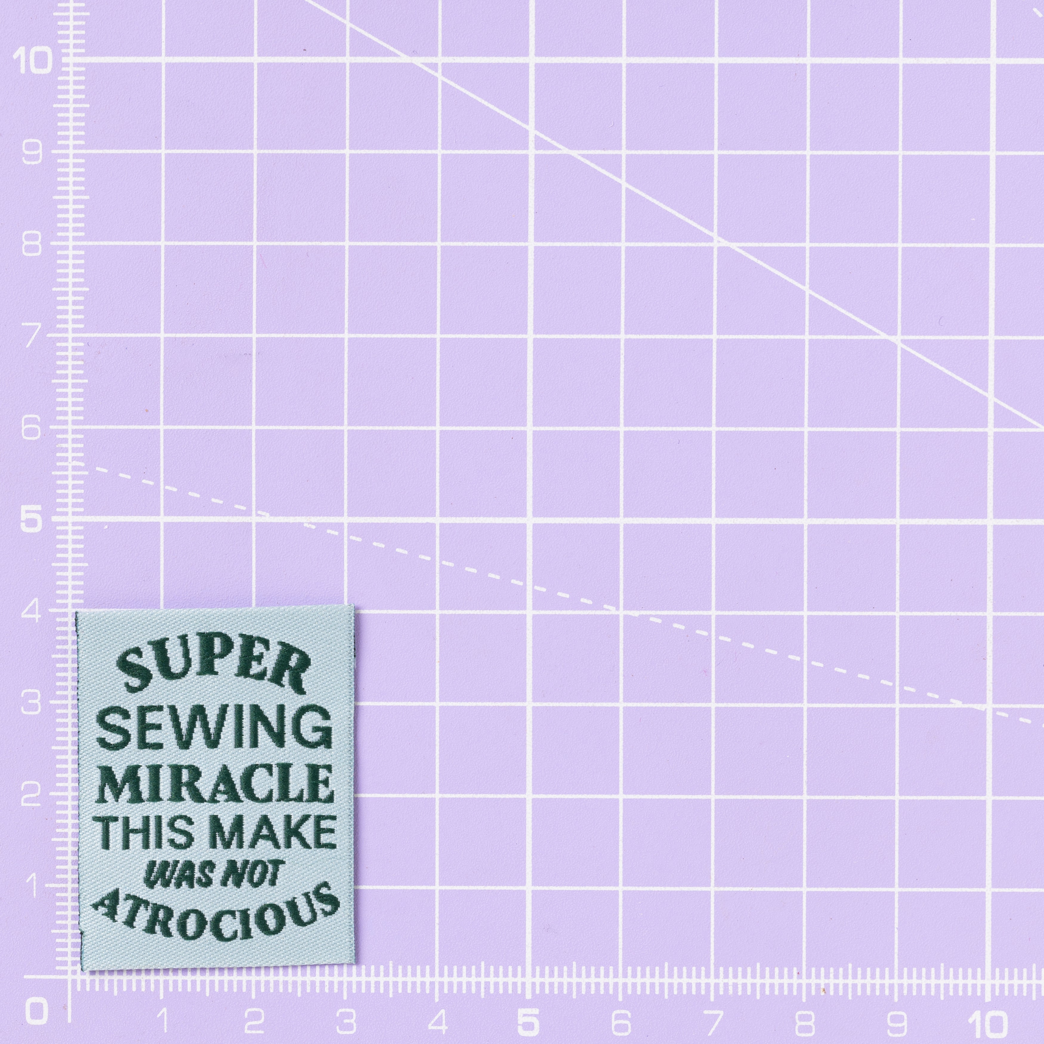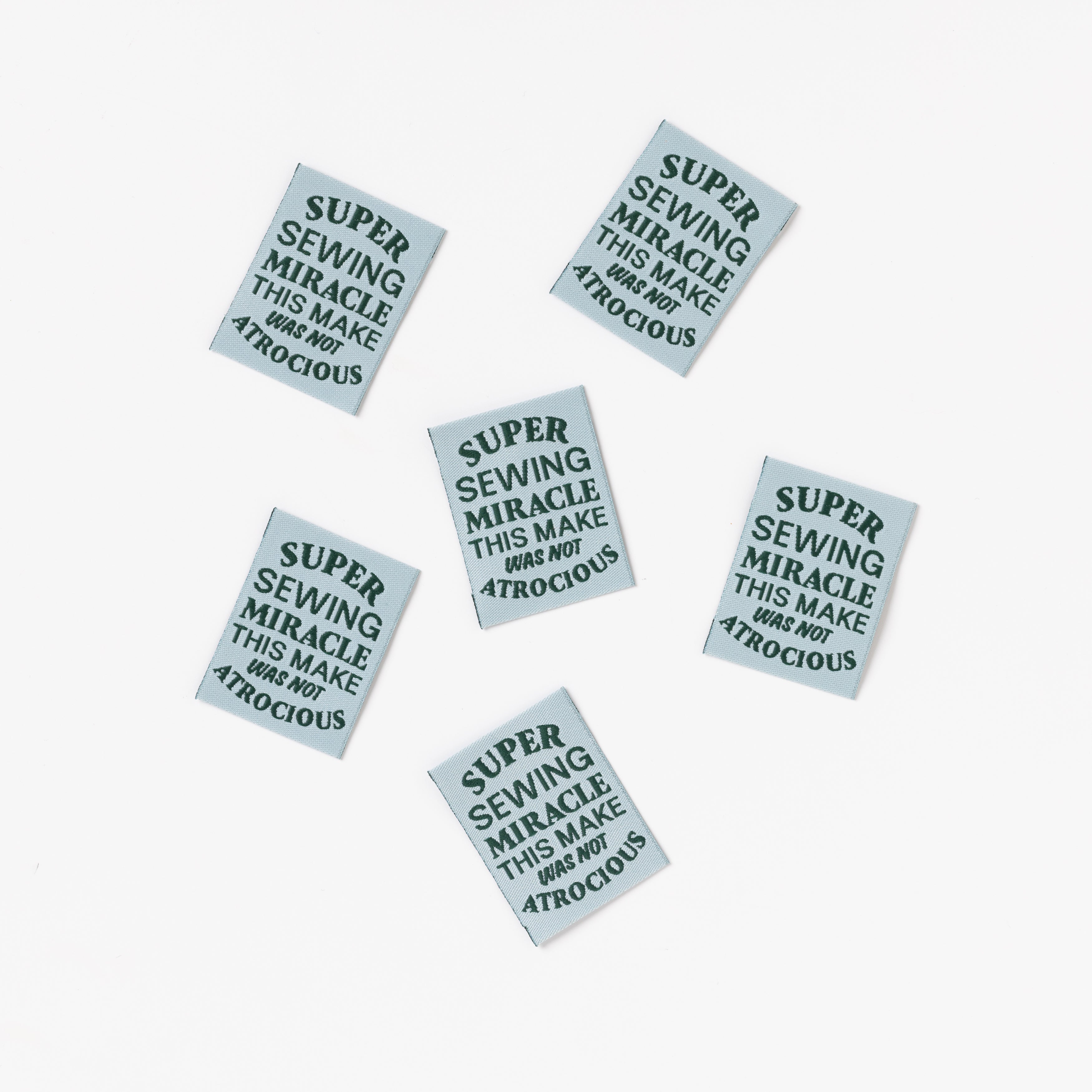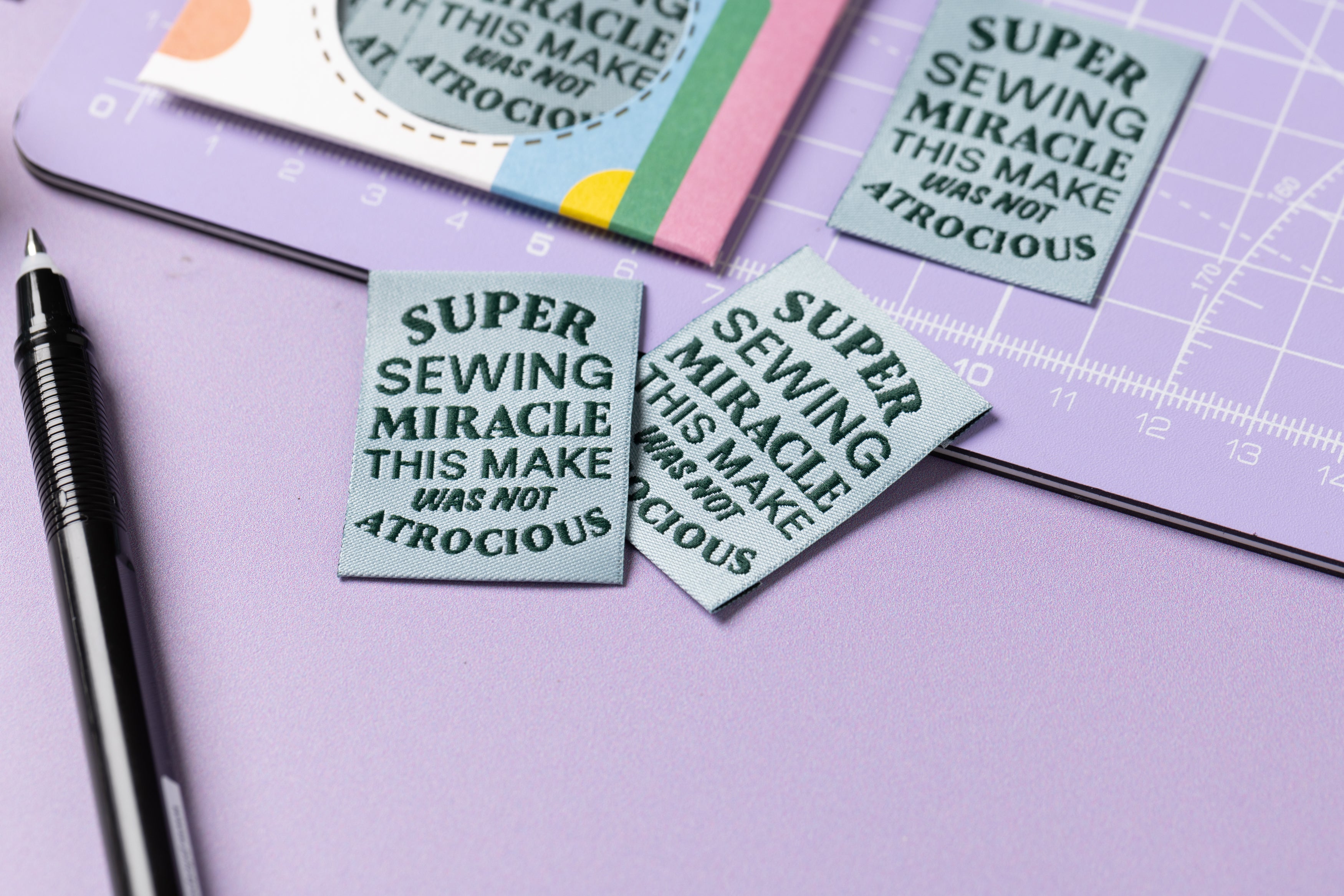Add a playful twist to your creations with our "Super Sewing Miracle" label! Featuring the cheeky phrase “super sewing miracle, this make was not atrocious,” sung to the tune of a certain beloved classic, this label is perfect for the light-hearted and rebellious sewist.
