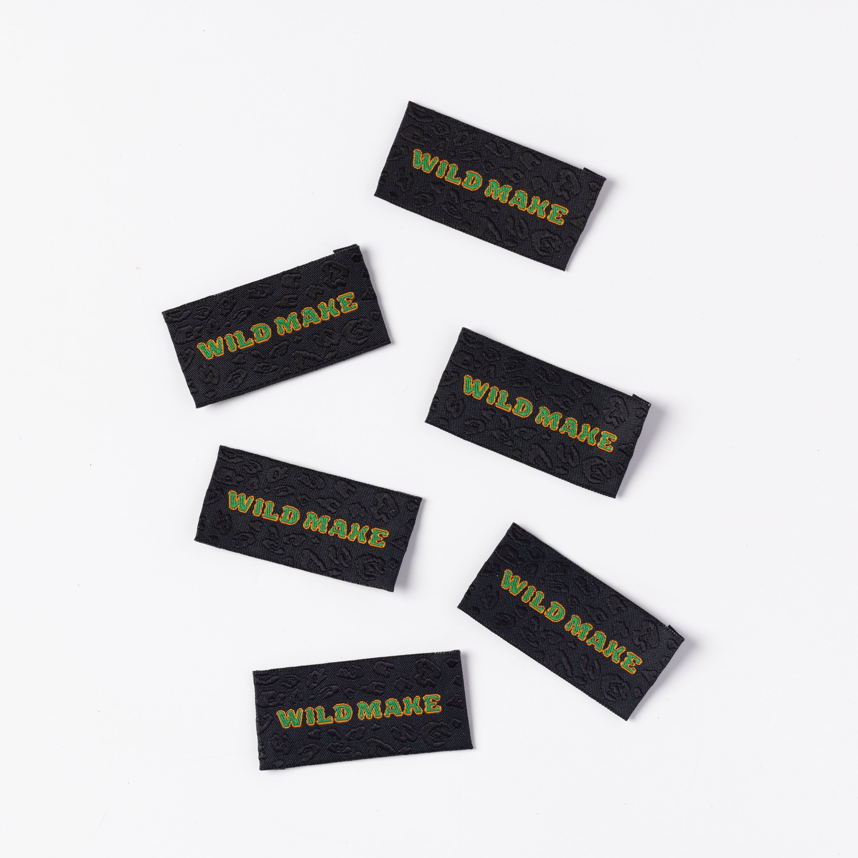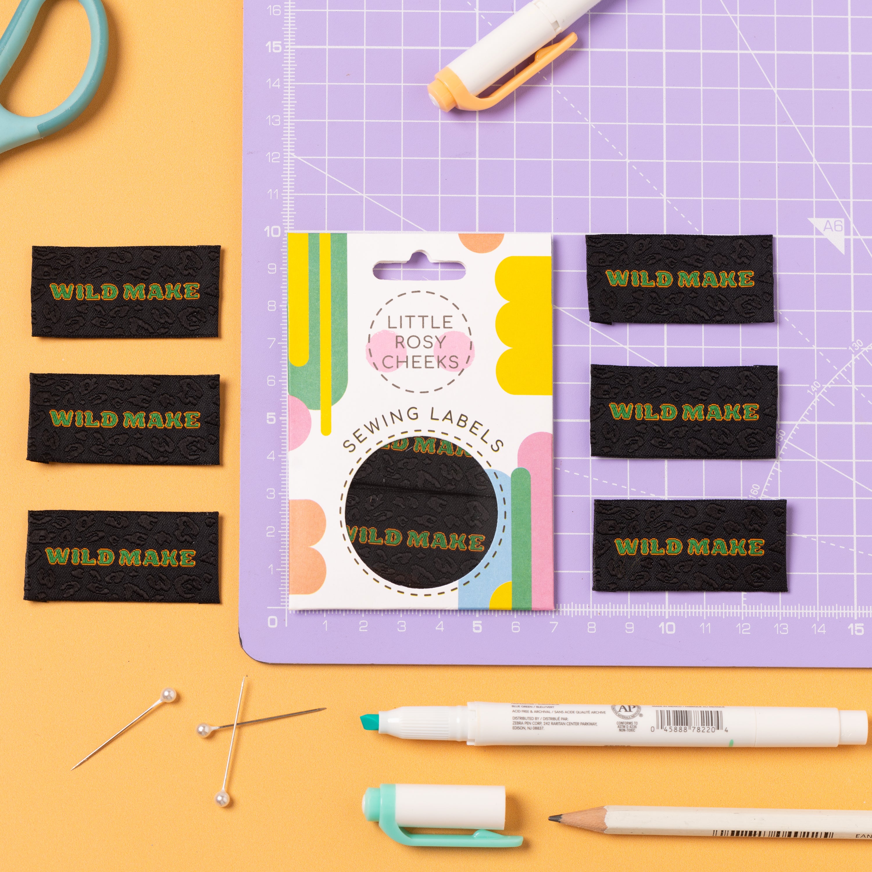 Unleash your creativity with our embossed leopard print labels. These striking labels feature a leopard print design in sleek black threads, offering a textured, embossed finish. The phrase Wild Make is intricately woven in vibrant green and orange, adding a pop of colour to your creations. Perfect for adventurous makers, these labels bring a fierce, stylish edge to your makes.