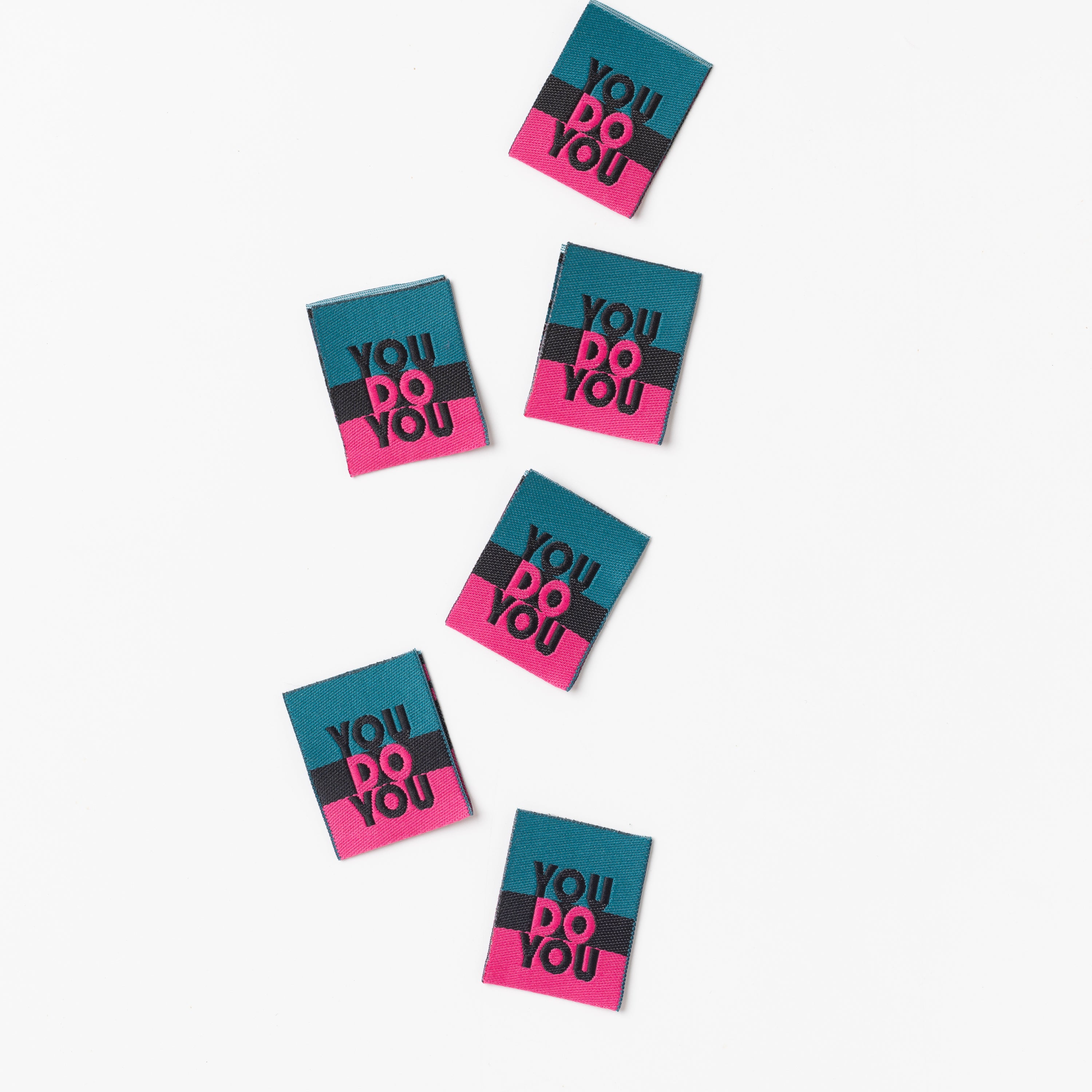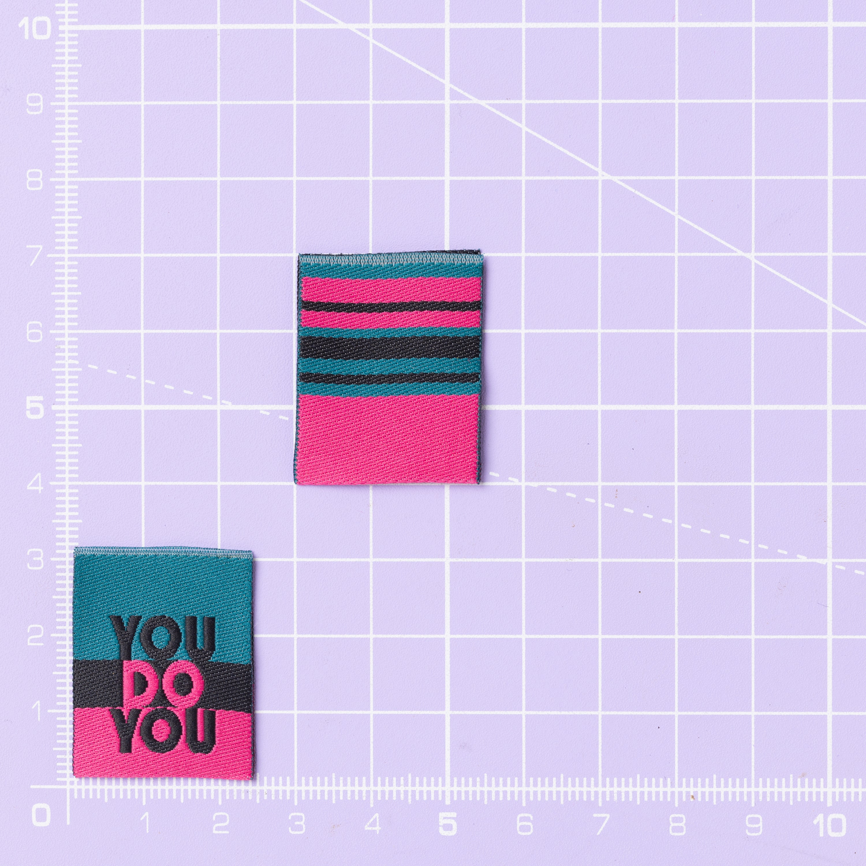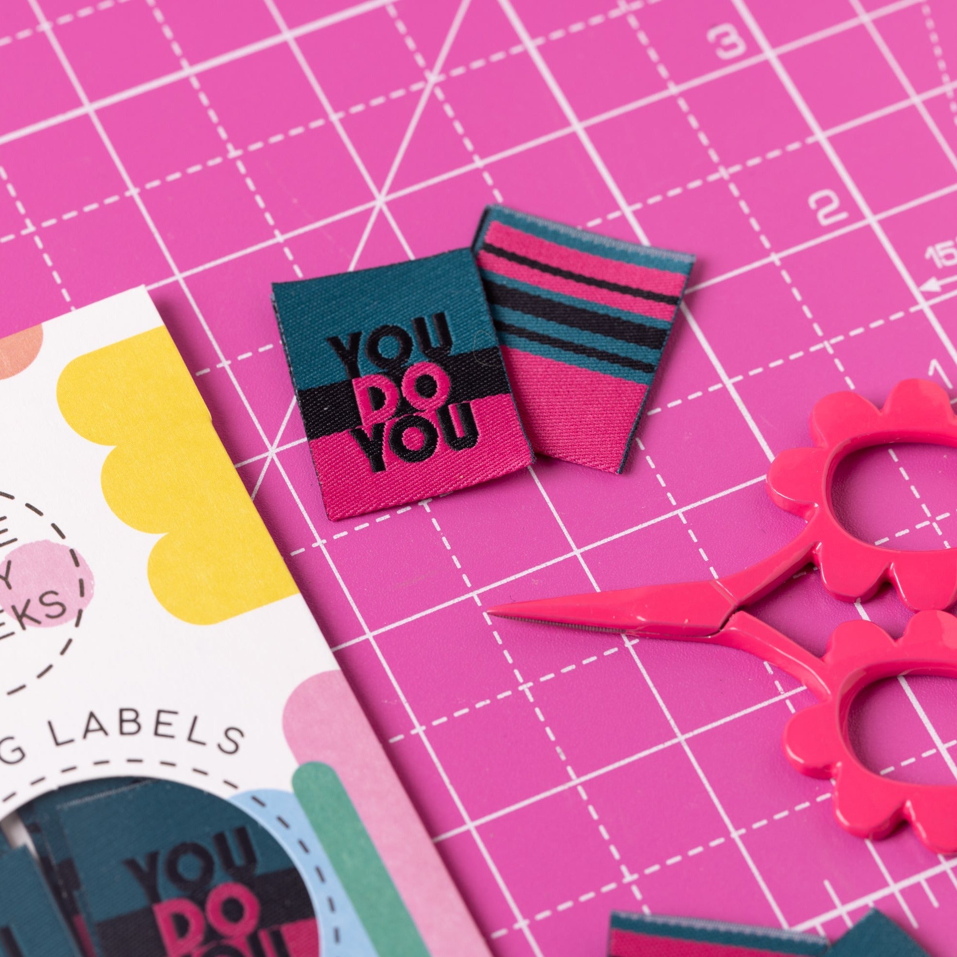 Add some spice to your sewing projects this autumn/winter with the YOU DO YOU 2.0 sewing labels. This best-selling slogan is back with a twist! Keep it bold, keep it funky, and always remember to Do It Your Way. 'YOU DO YOU' woven in black and pink thread on a stripy background.