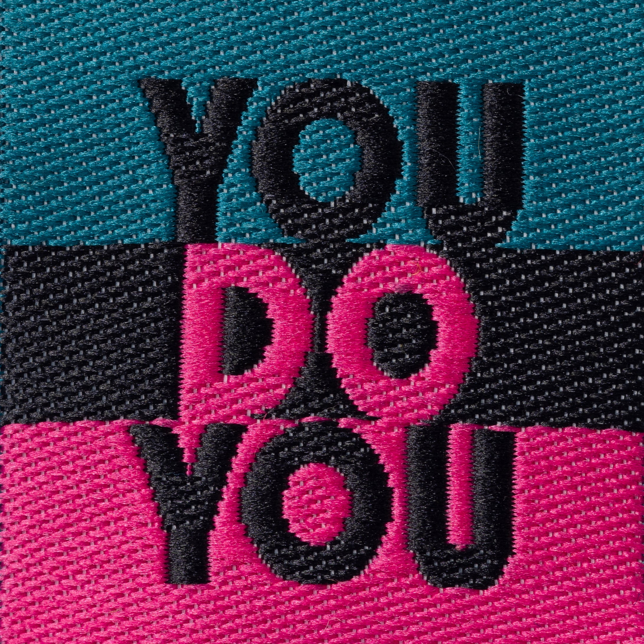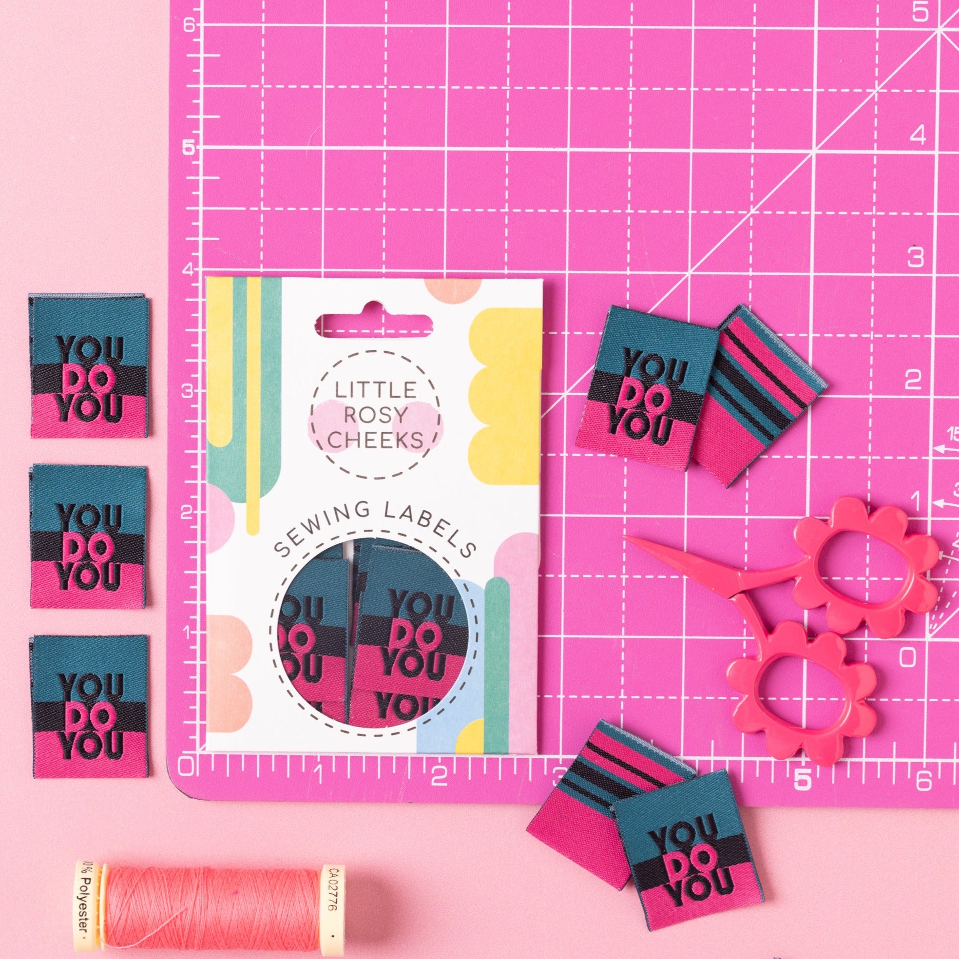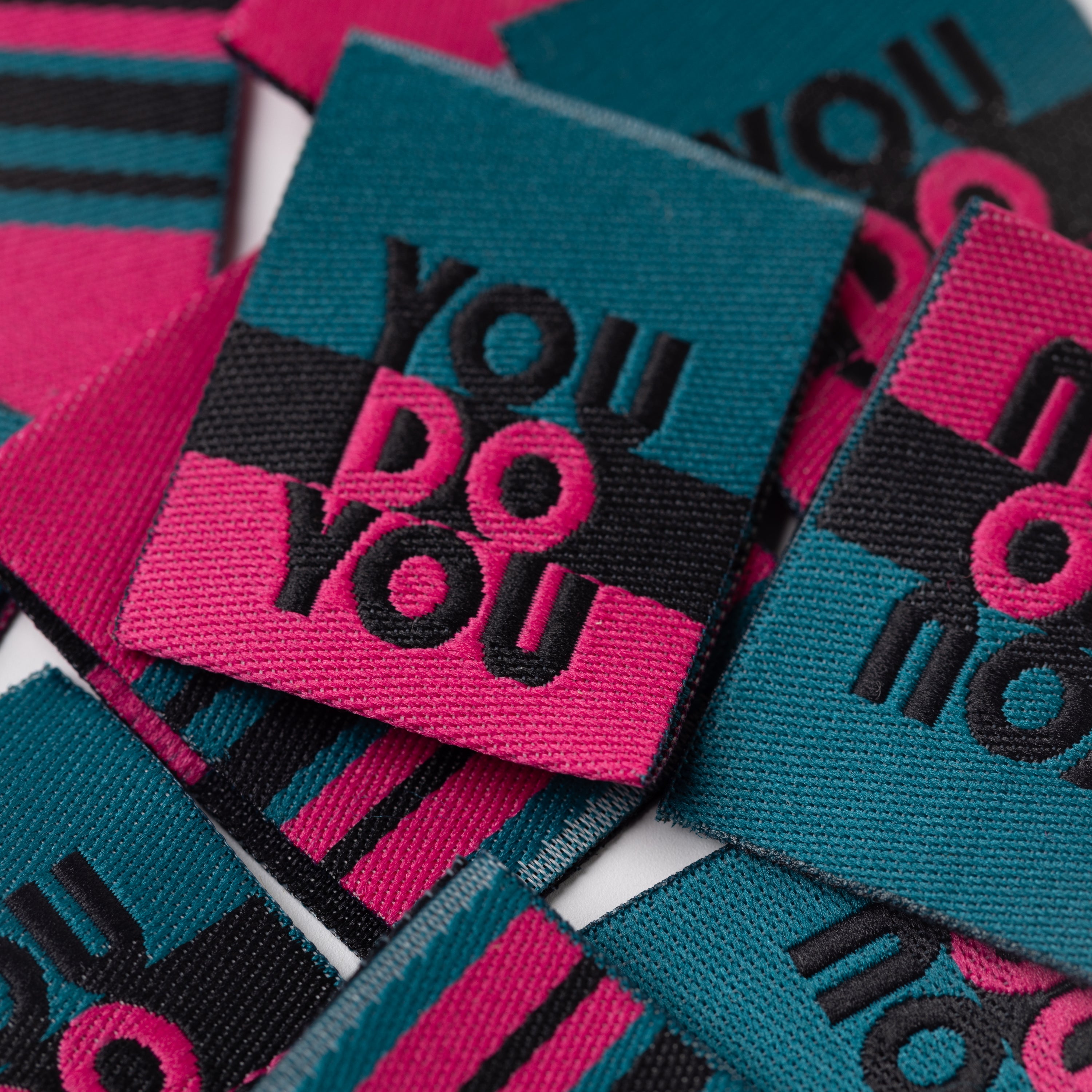 Add some spice to your sewing projects this autumn/winter with the YOU DO YOU 2.0 sewing labels. This best-selling slogan is back with a twist! Keep it bold, keep it funky, and always remember to Do It Your Way. 'YOU DO YOU' woven in black and pink thread on a stripy background.